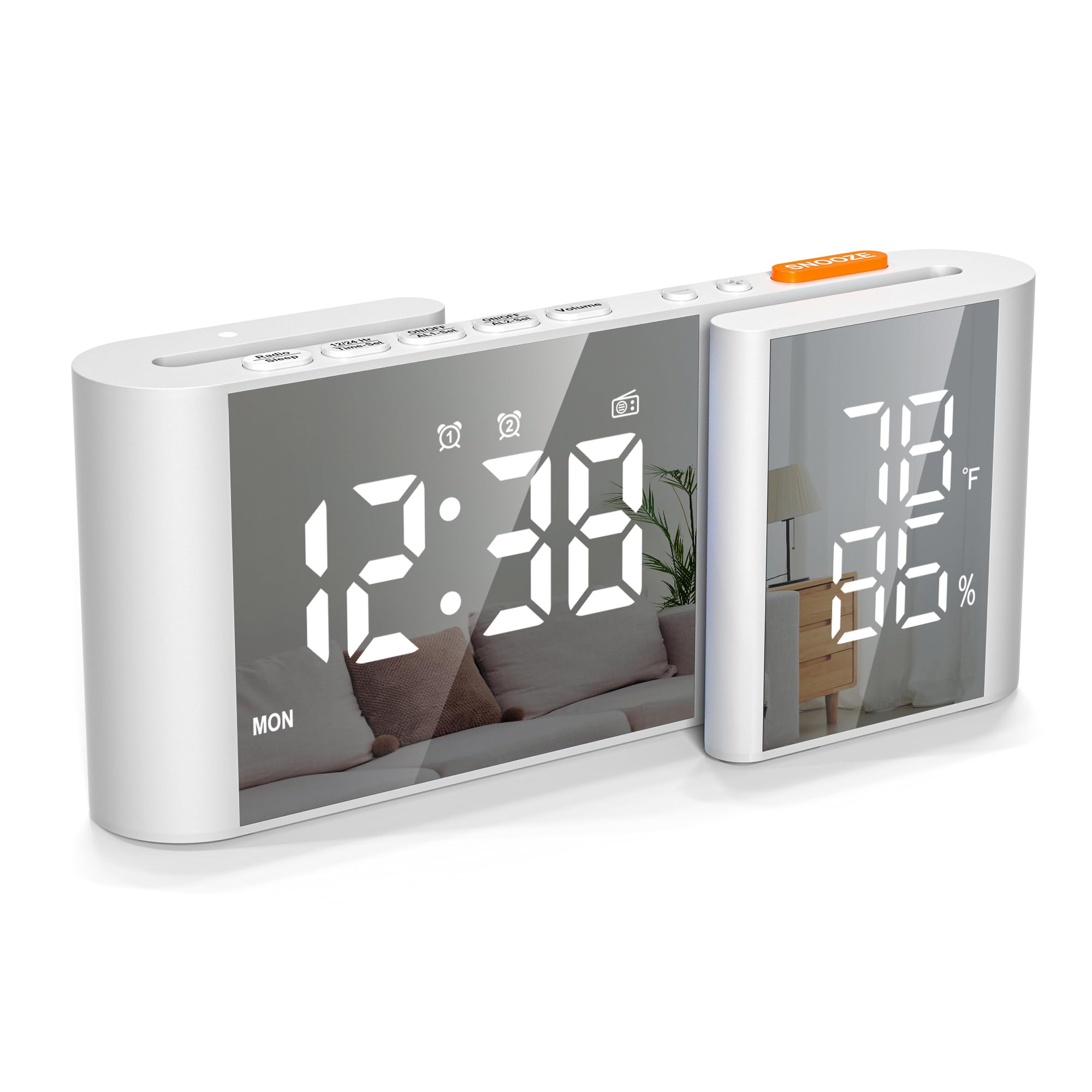 Mesqool Reloj despertador digital, con calendario de temperatura y humedad, volumen fuerte, alarma doble, puertos de carga USB y t