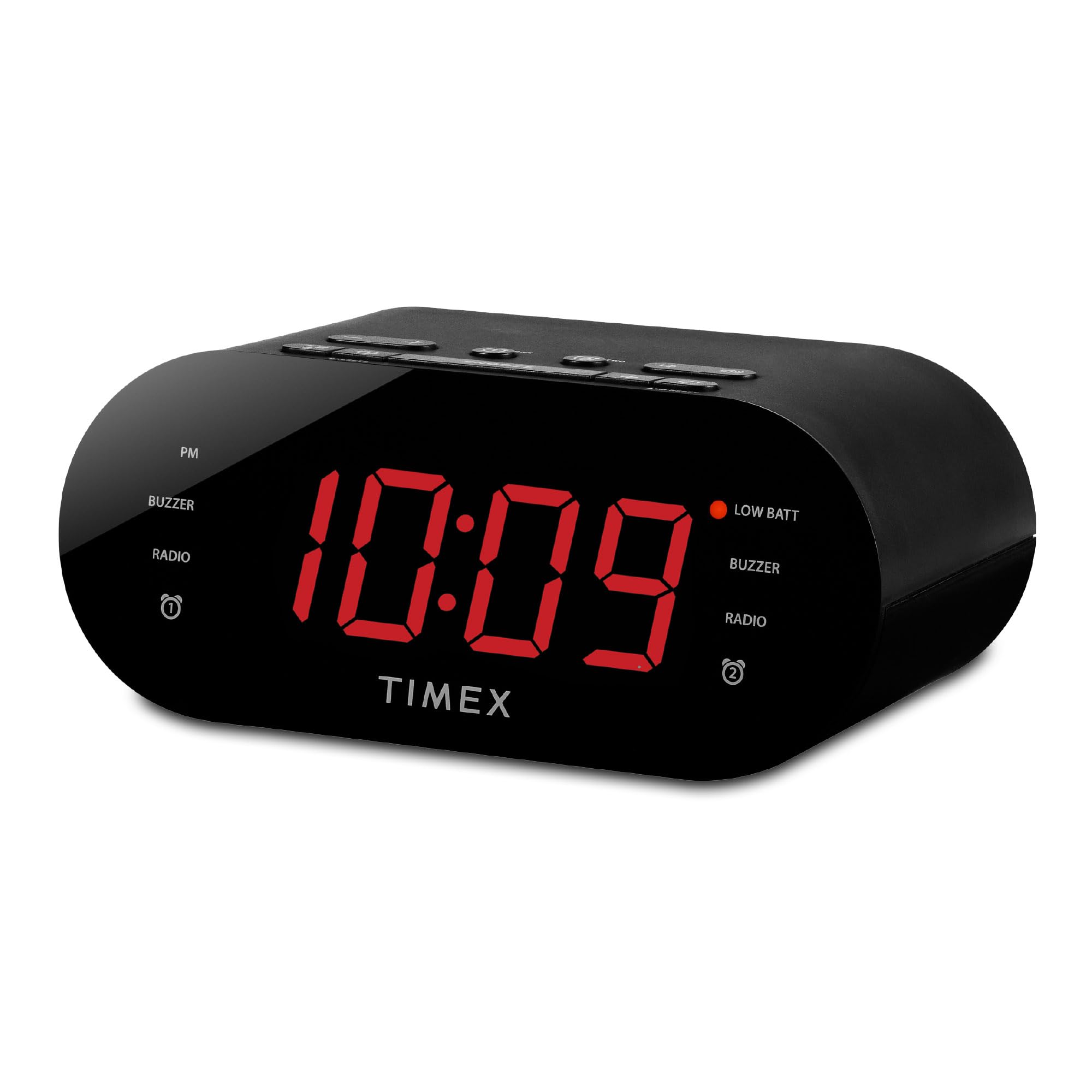 Timex Reloj despertador para dormitorio con radio FM y 10 ajustes preestablecidos de estación, radio reloj con alarma dual, cargad