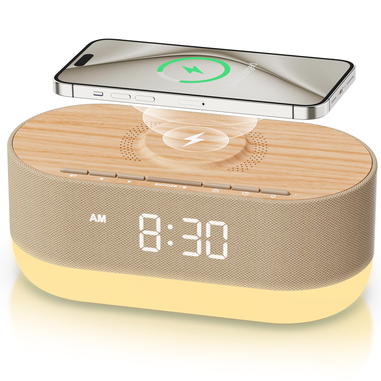 HOUSBAY Radio despertador 3 en 1, cargador inalámbrico y altavoz dual Bluetooth, estación de carga de 10 W para iPhone/Samsung, lu