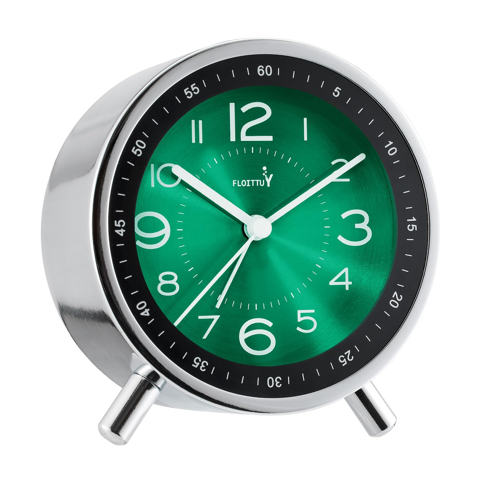 Reloj despertador de metal súper silencioso, despertador redondo con tira de luz nocturna, funciona con pilas, fácil de instalar,