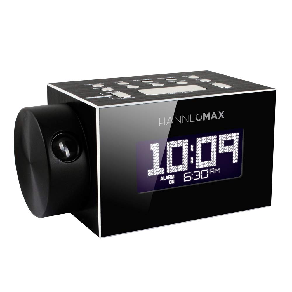 HANNLOMAX HX-108CR PLL Radio FM, reloj digital con pantalla LCD blanca, proyección de tiempo, Bluetooth, alarma única, carcasa de