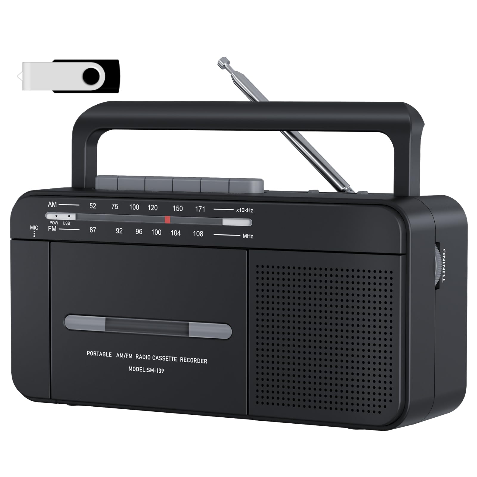 Reproductor de cinta de casete Boombox, convertidor de casete de audio a digital a través de USB, grabadora de radio AM FM, grabac