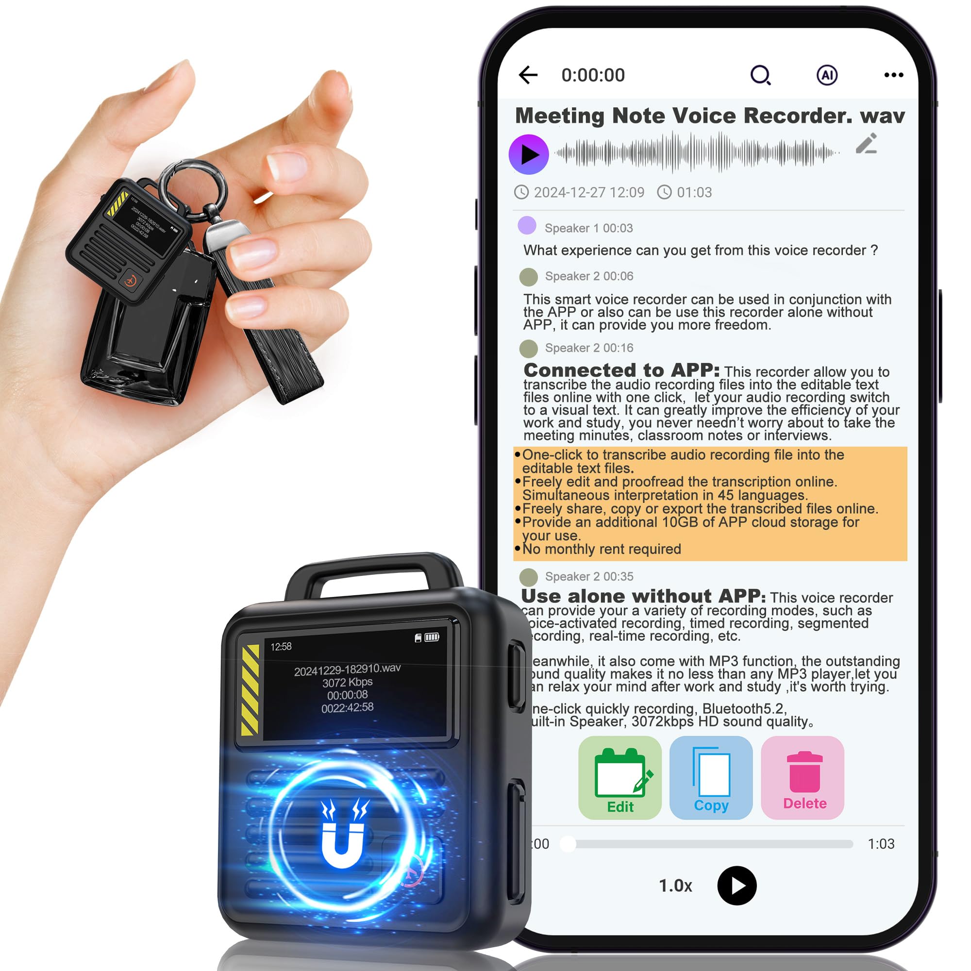 Grabadora de voz digital Moresen de 128 GB con control de aplicación, 9360 horas 3072 kbps grabadora de audio HD con transcribir y