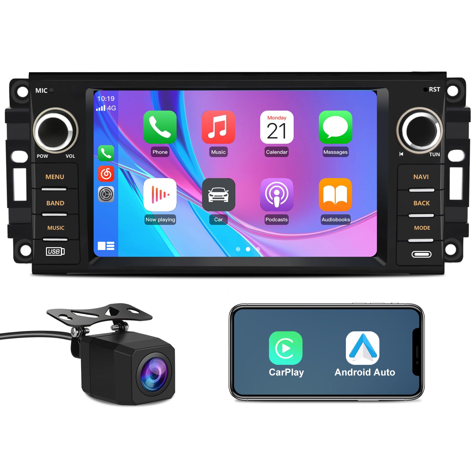 [4G+64G] Estéreo de coche Android 15 de 10 pulgadas con CarPlay inalámbrico y Android Auto, Snapdragon 8 Core, Double Din, WiFi/Bl