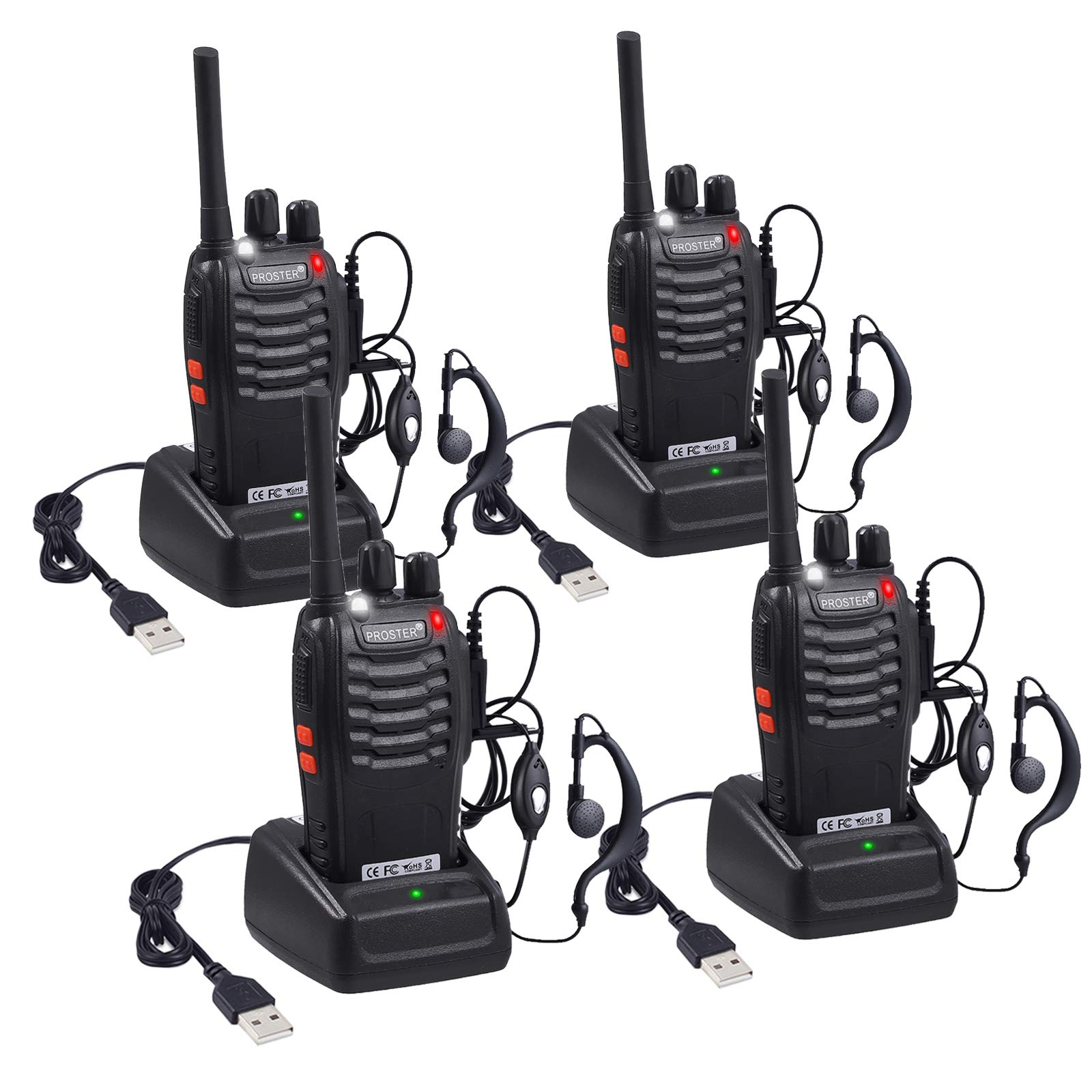 Proster Walkie Talkies recargables 2 pares – Radios bidireccionales de largo alcance 16 canales de mano Walky Talky con linterna b