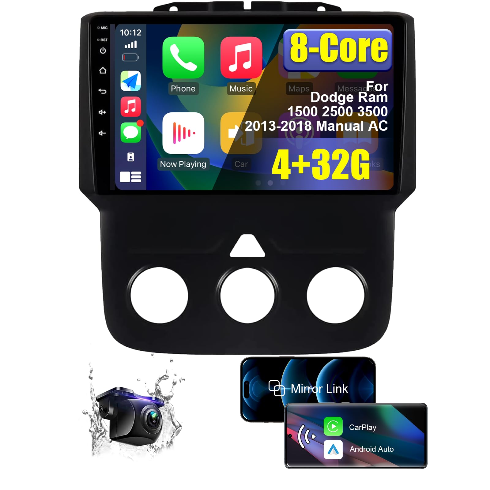 Estéreo de coche 4+32G de 8 núcleos para Dodge Ram 1500 2500 3500 2013 2014 2015 2016 2017 2018 Manual AC con Carplay Android Auto