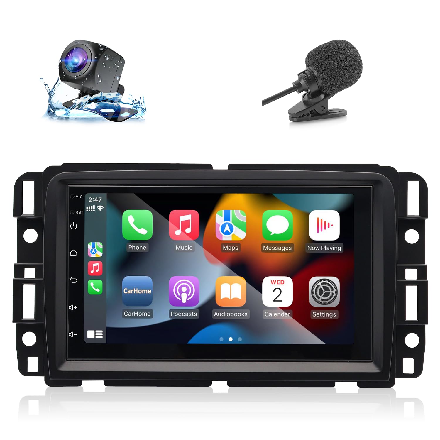 Estéreo de coche de doble DIN con Apple CarPlay inalámbrico y Android Auto, receptor de audio de coche con pantalla táctil de 7 pu