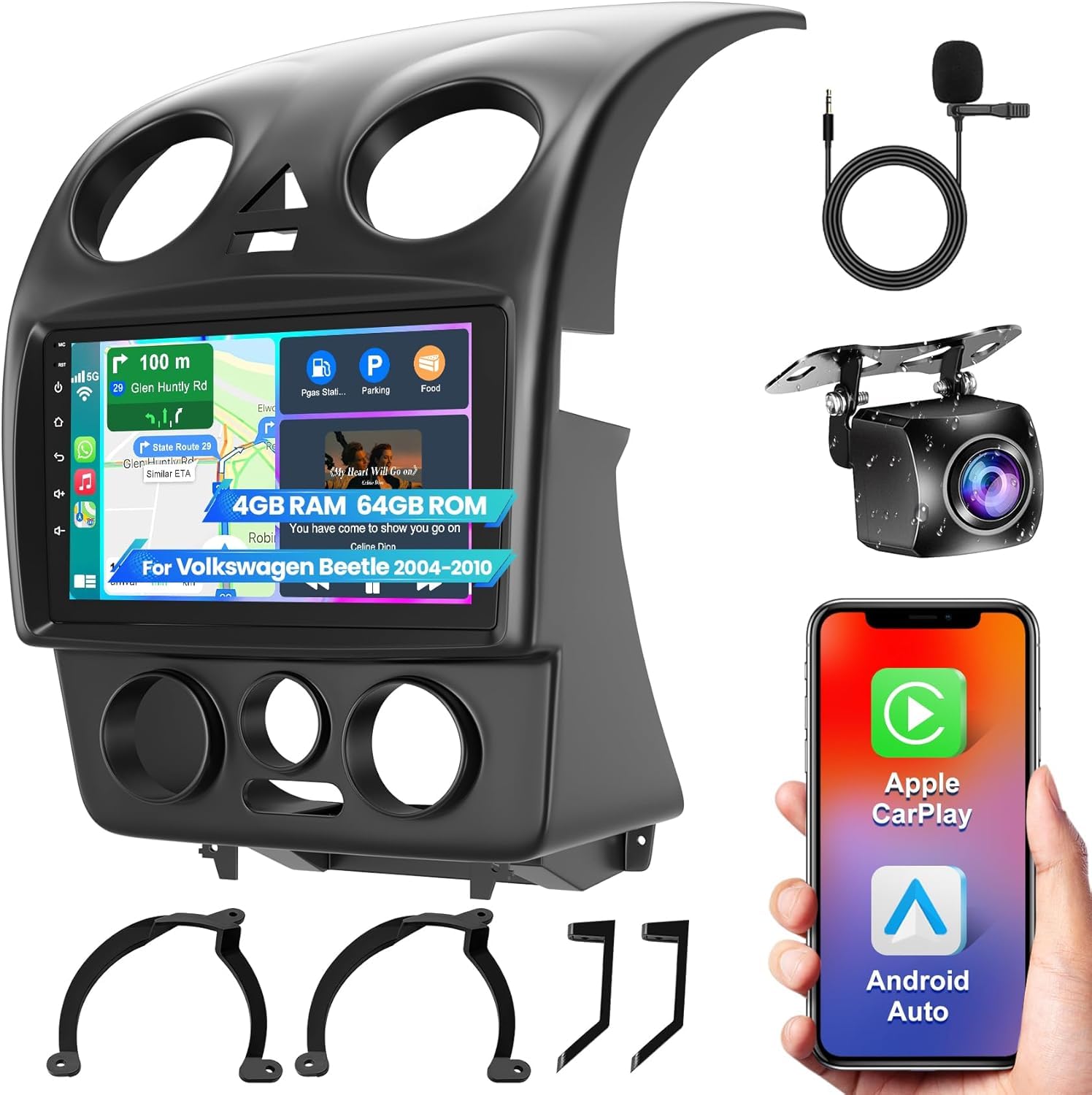 4G+64G 9 inch Touch Screen Car Radio Stereo for Volkswagen VW Beetle 2004-2010 Android 13 Wireless CarPlay Android Auto Bluetooth