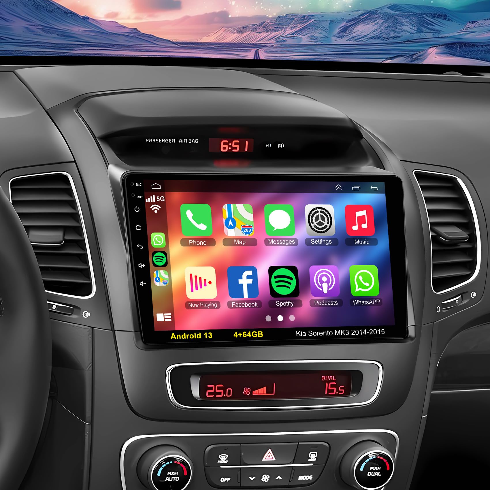 [4G+64G] Android 13 Radio de coche para Kia Sorento MK3 2014 2015, Carplay inalámbrico Android Auto, 9 pulgadas IPS pantalla tácti