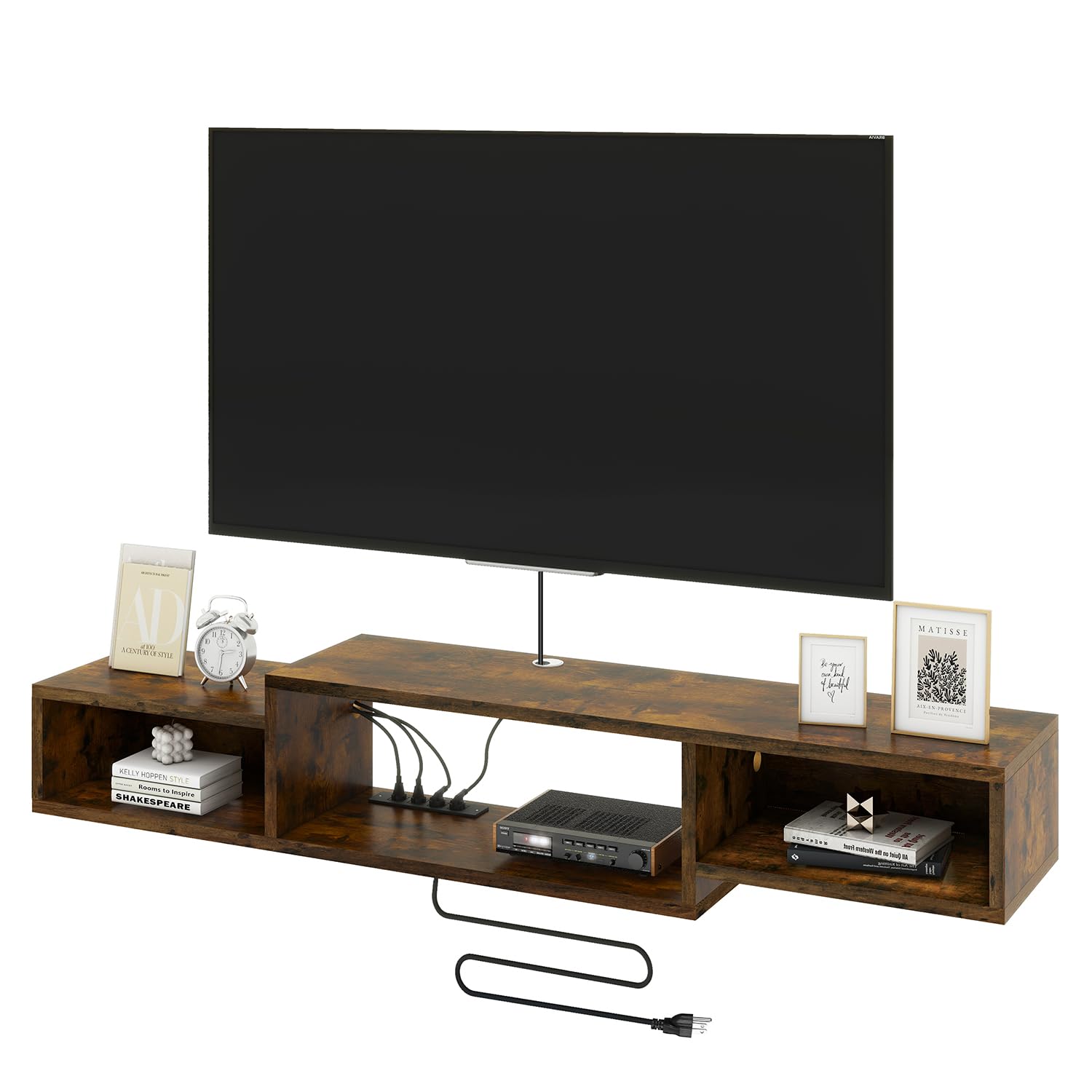 IBUYKE Soporte flotante de TV de 59 pulgadas montado en la pared con toma de corriente, estante de consola multimedia montado en l