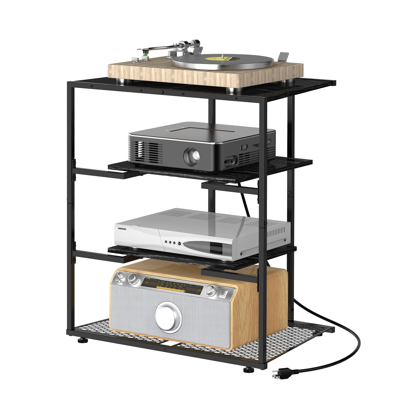 OYEAL Soporte multimedia AV de 4 niveles con regletas de alimentación, estante de consola multimedia, estante de audio, centro de