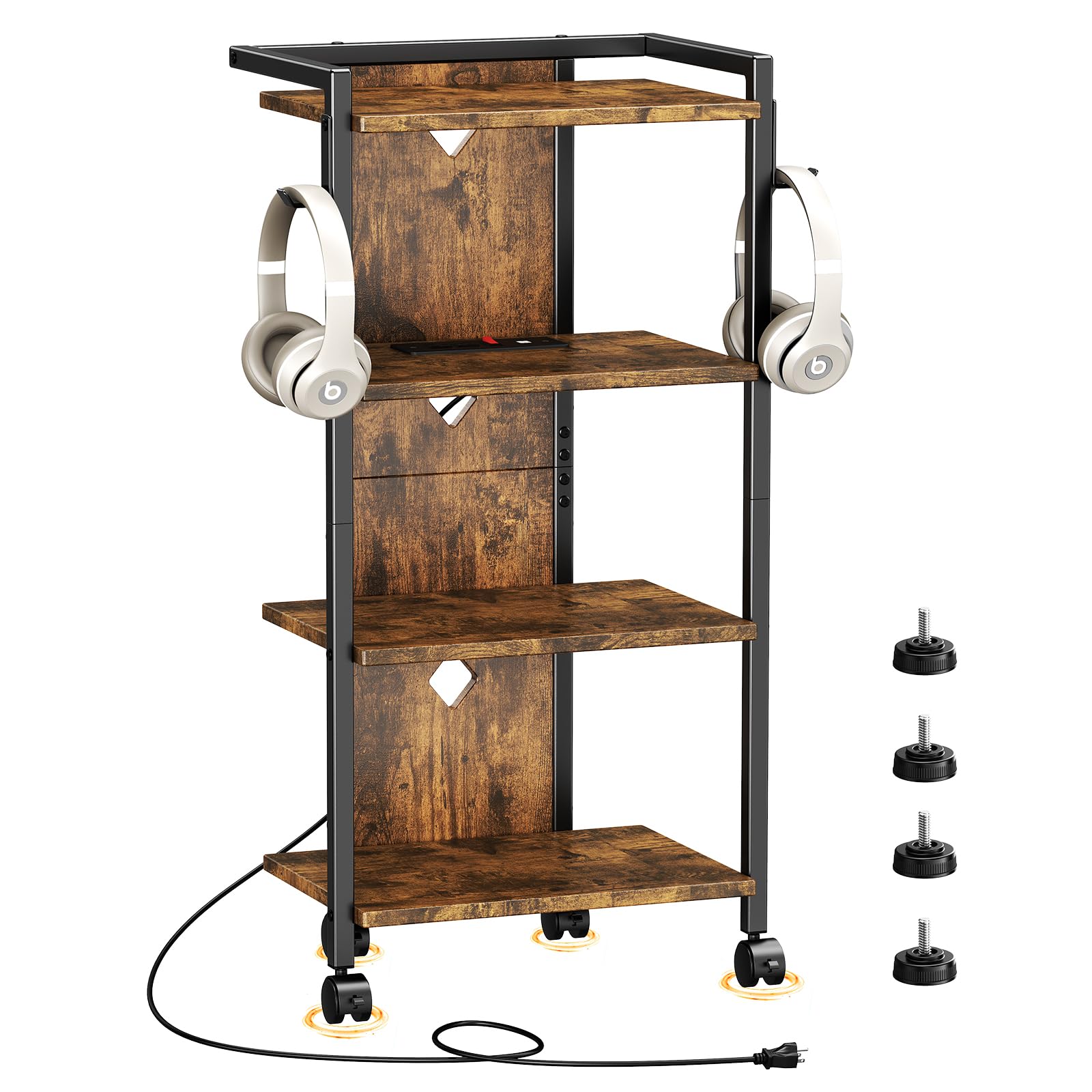 Soporte multimedia móvil AV con tomas de corriente, consola multimedia de 4 niveles con 4 ruedas giratorias, soporte de entretenim