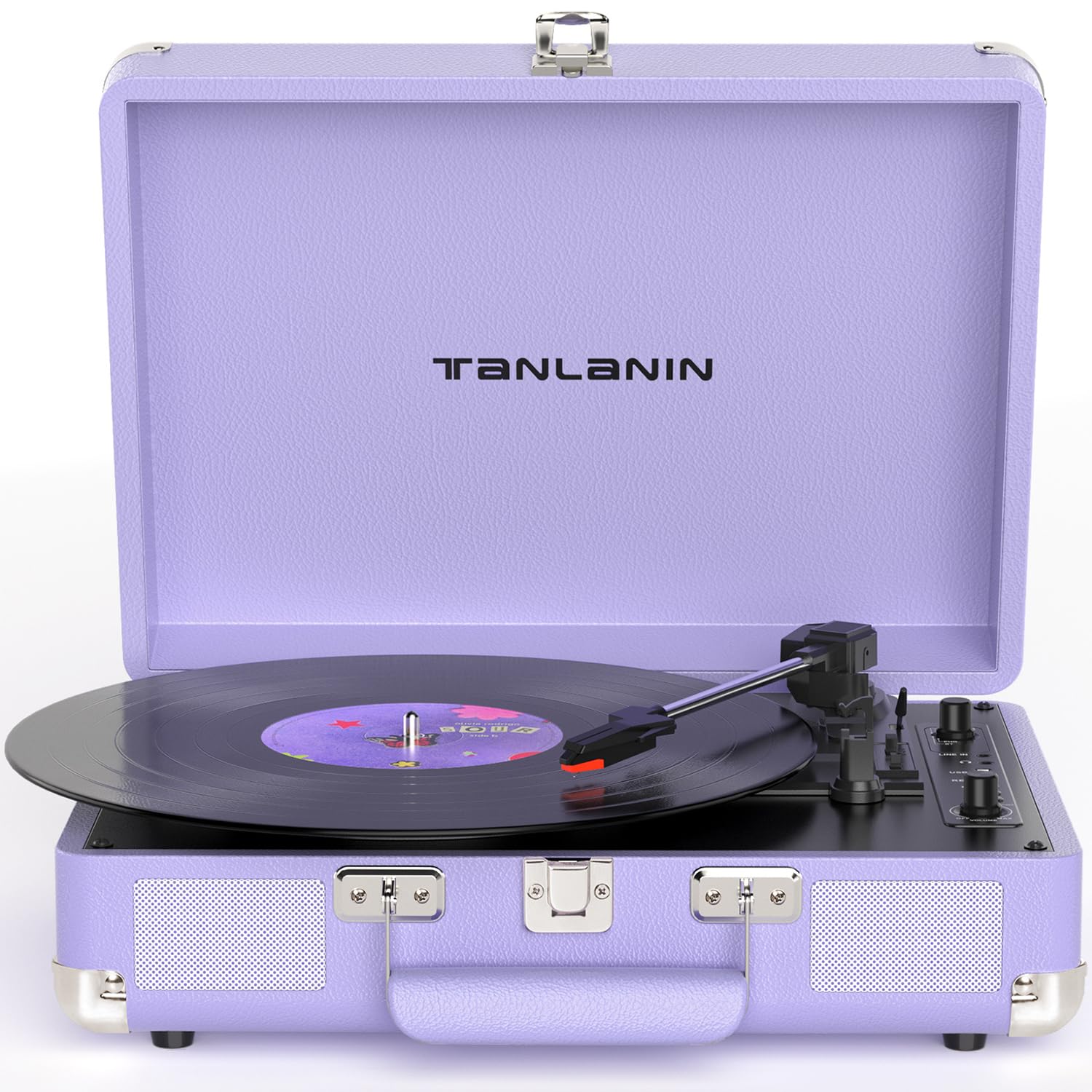 Tocadiscos de vinilo de acuarela con control de agudos y graves, tocadiscos portátiles vintage de 3 velocidades con Bluetooth con
