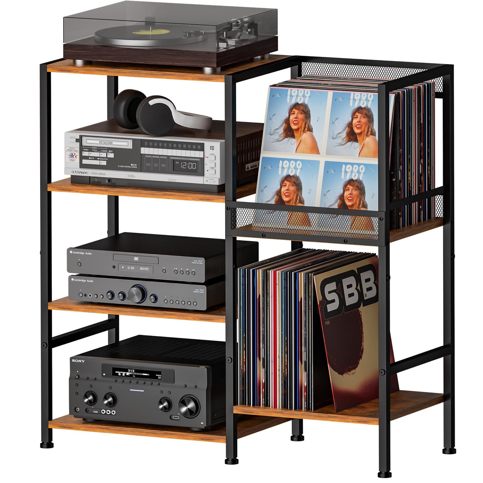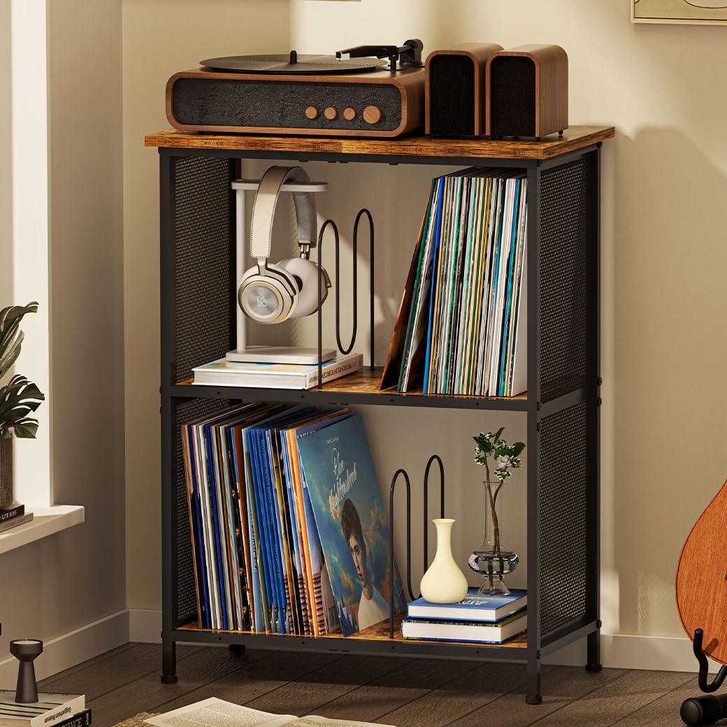 X-cosrack Soporte para tocadiscos con almacenamiento de hasta 100 álbumes, soporte para discos de vinilo pequeño retro – Divisor a
