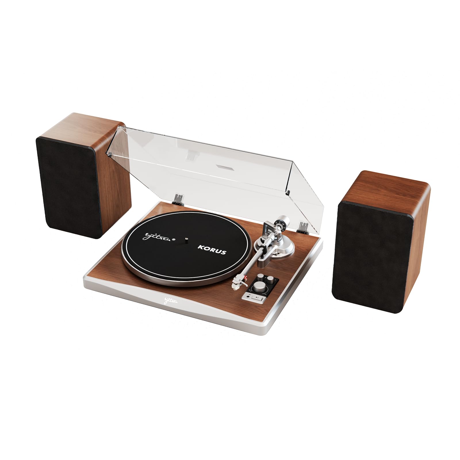 KORUS – Tocadiscos con altavoces externos, tocadiscos Bluetooth, tocadiscos de transmisión por correa de 2 velocidades, contrapeso