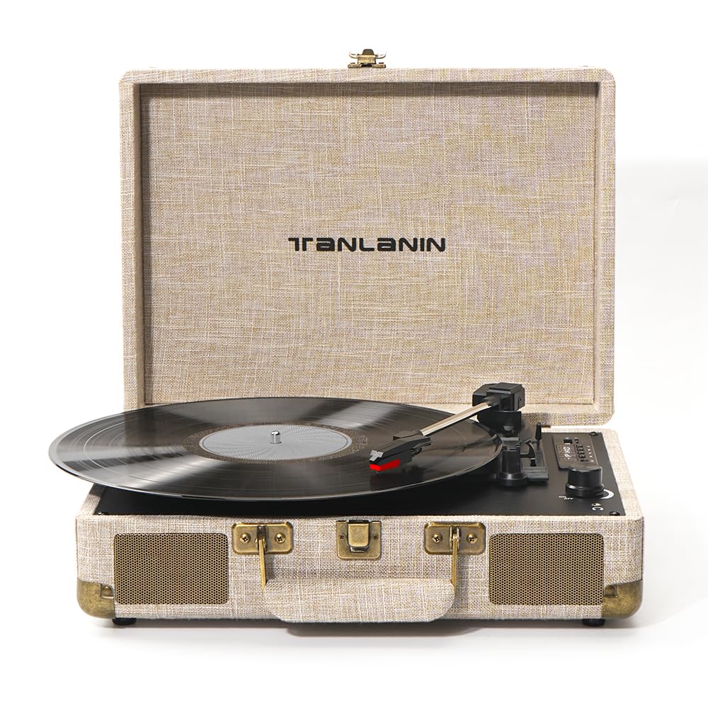 Reproductor de discos de vinilo con altavoces integrados, tocadiscos vintage de 3 velocidades, control de graves/agudos, conector