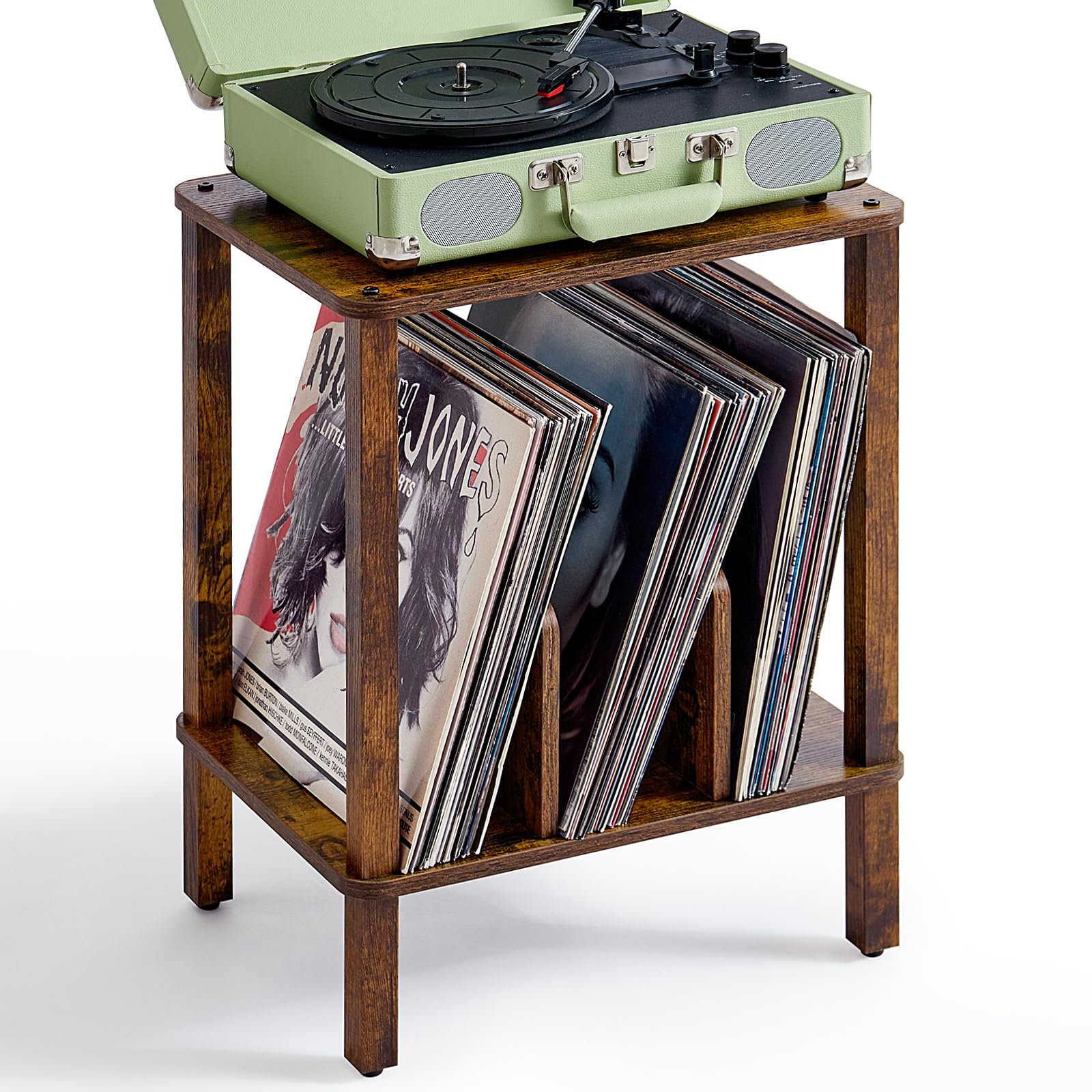 LELELINKY Soporte para tocadiscos de 2 niveles con almacenamiento de discos de vinilo hasta 100 álbumes, soporte para discos de do