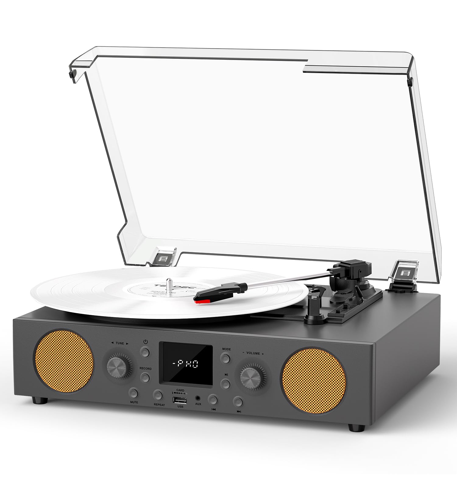 Tocadiscos de 3 velocidades, tocadiscos Bluetooth con altavoces integrados y patas desmontables, reproducción USB y grabadora USB