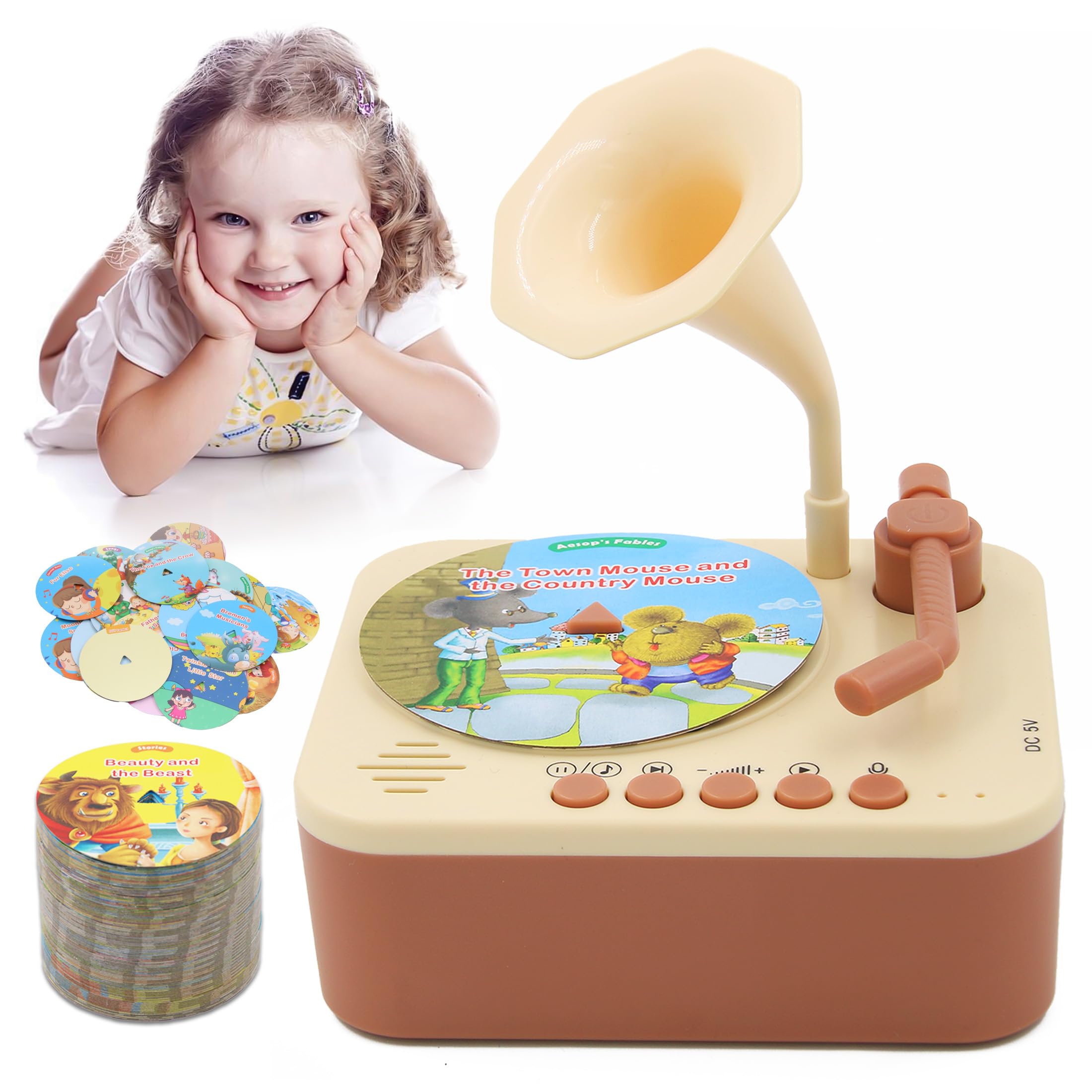 Fonógrafo para niños con 99 tarjetas, tocadiscos para niños pequeños, reproductor de historia y música, reproductor de música para