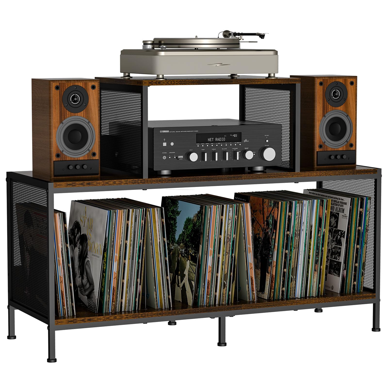Soporte para tocadiscos con almacenamiento de vinilo con capacidad para hasta 300 libras, armario de mesa grande para almacenamien
