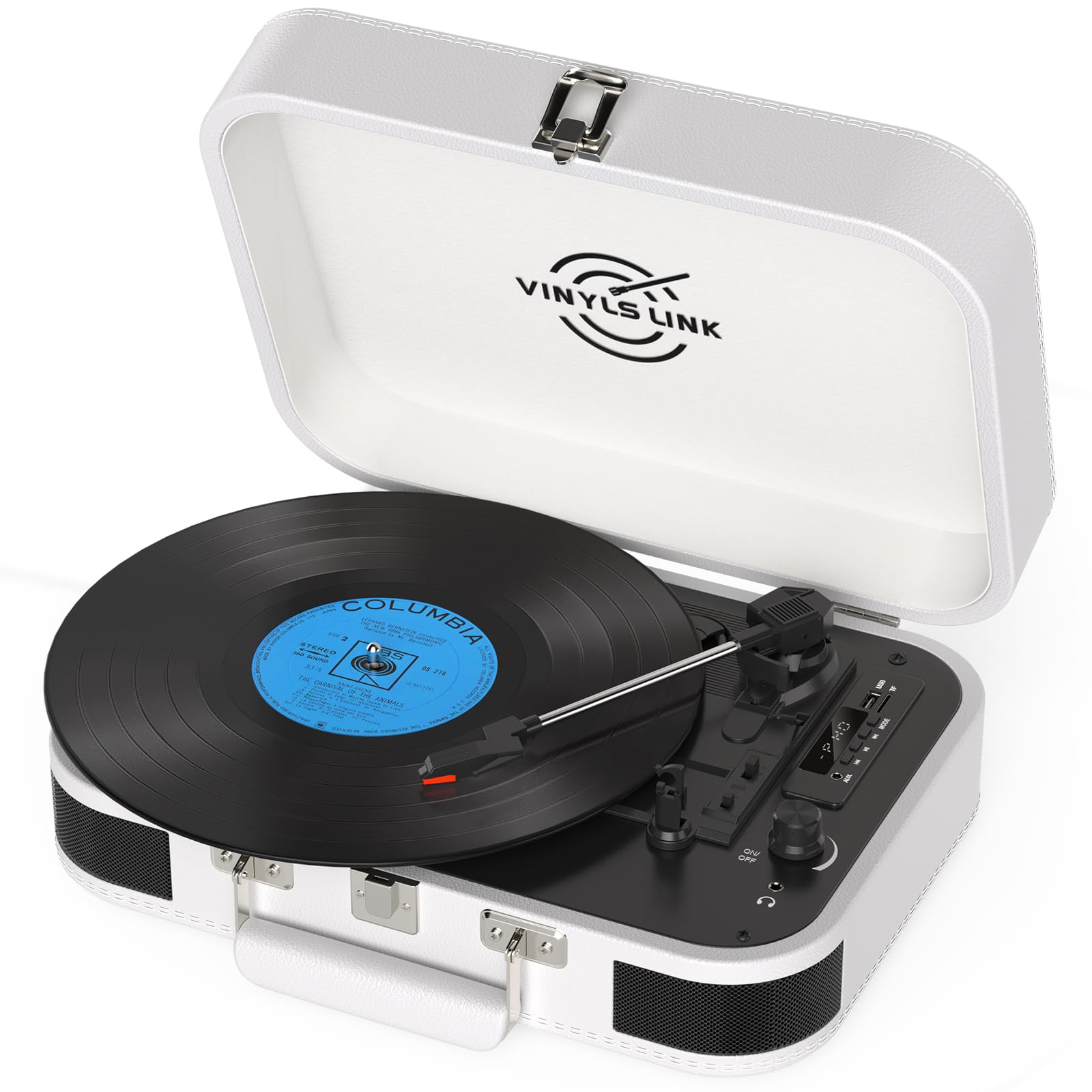 Udreamer Reproductor de discos de vinilo para maleta con altavoces integrados, tocadiscos con BT 5.3, RCA, línea y conector para a