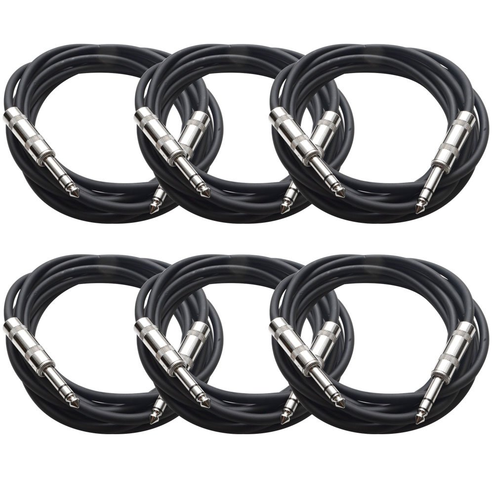 Seismic Audio Altavoces TRS de ¼” a ¼” TRS Cables de conexión TRS, paquete de 6