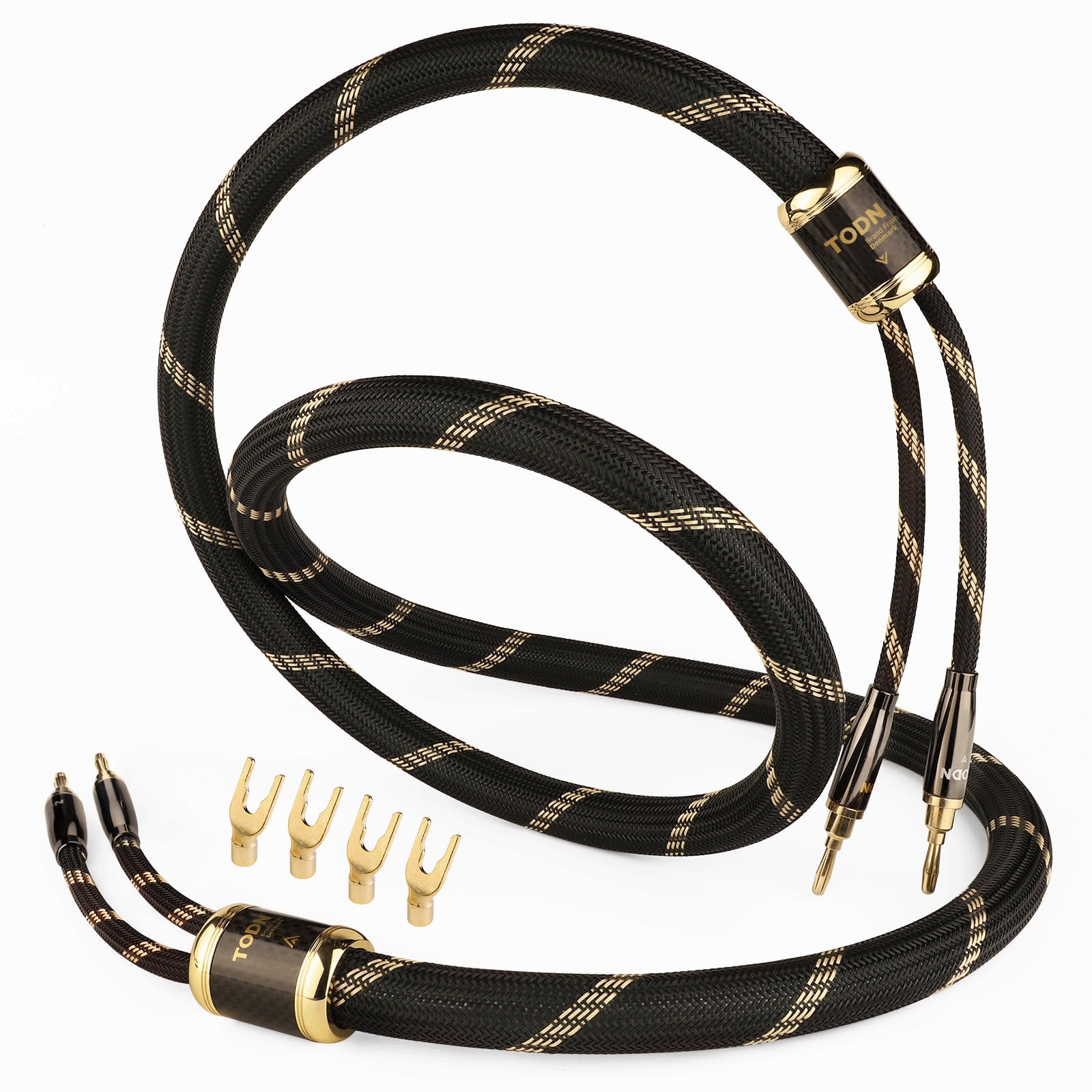 TODN Cable de altavoz de enchufe tipo banana de 5 AWG con enchufe convertible de pala doble blindado, cable estéreo para amplifica