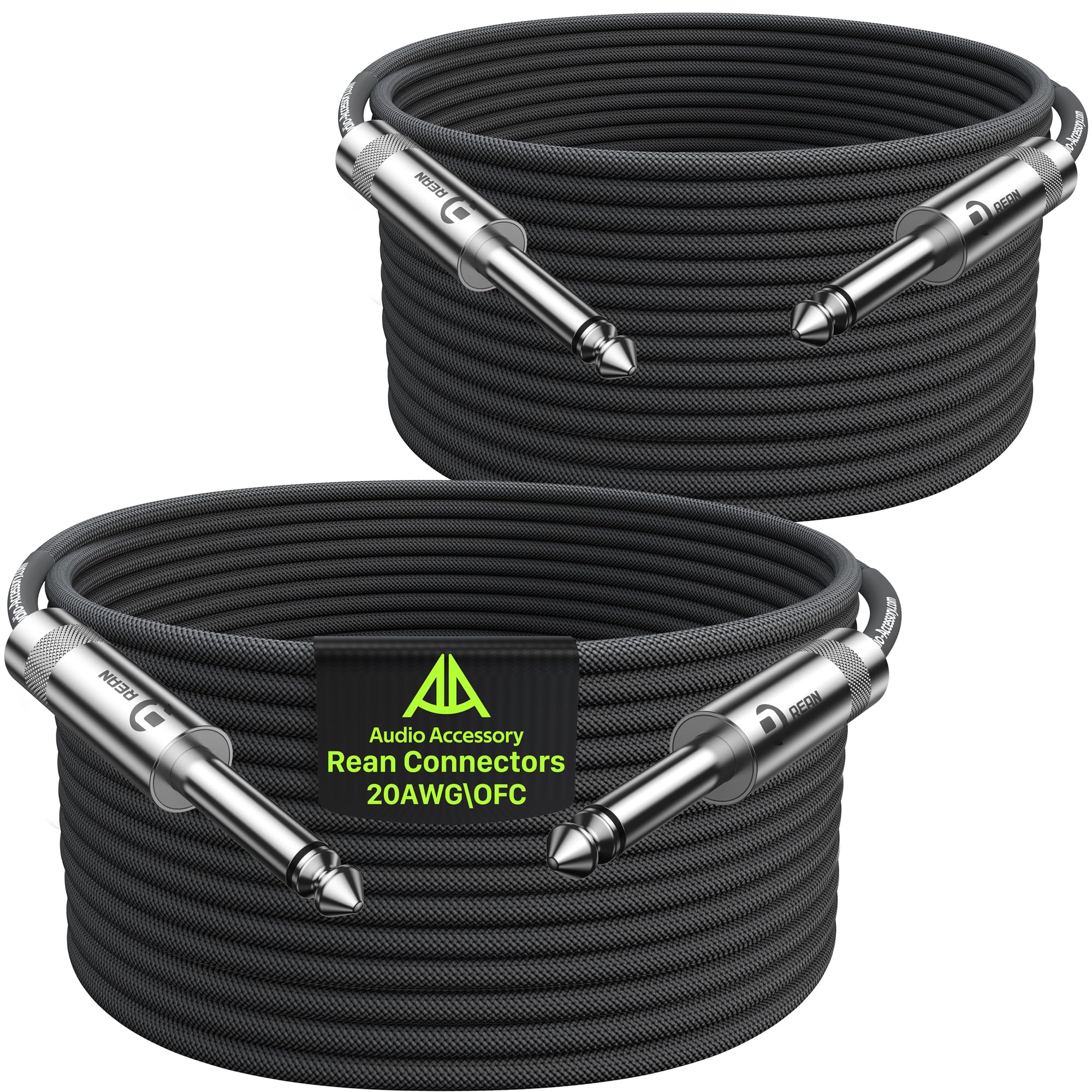 Cable de instrumento de 1/4 de 25 pies, paquete de 2 unidades, 20AWG 99.99% OFC – Imprescindible para cable largo de guitarra, nai