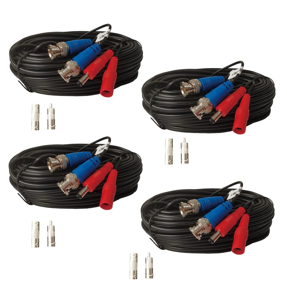 Paquete de 4 cables de alimentación de video todo en uno de 50 pies, cable de cámara de seguridad, cable de extensión BNC de vigil