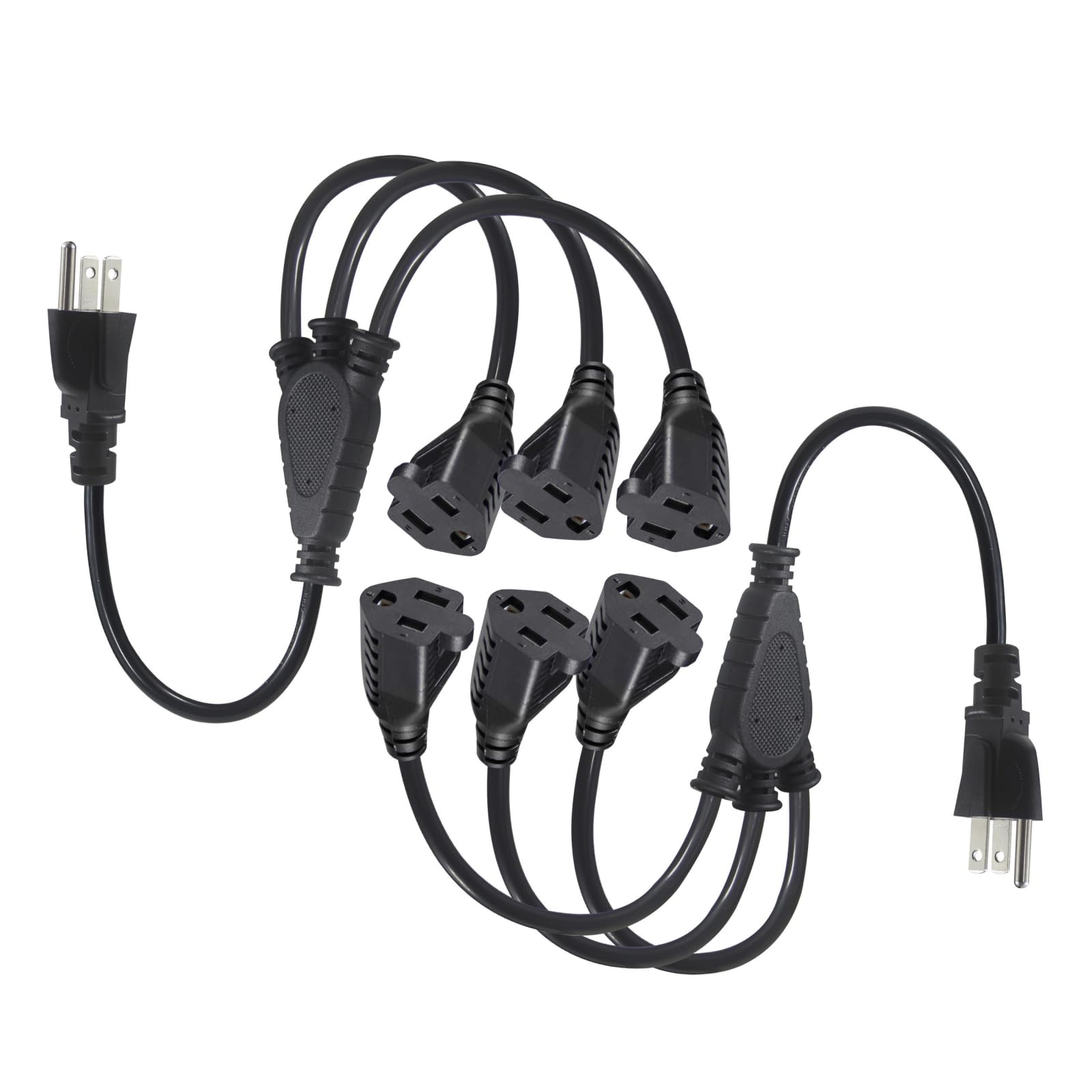 KUNCAN Cable de extensión divisor de 3 vías, divisor de potencia de 3 clavijas, 1 a 3 vías, 1 pie 18 AWG 10A/1250 W, NEMA 5-15P a