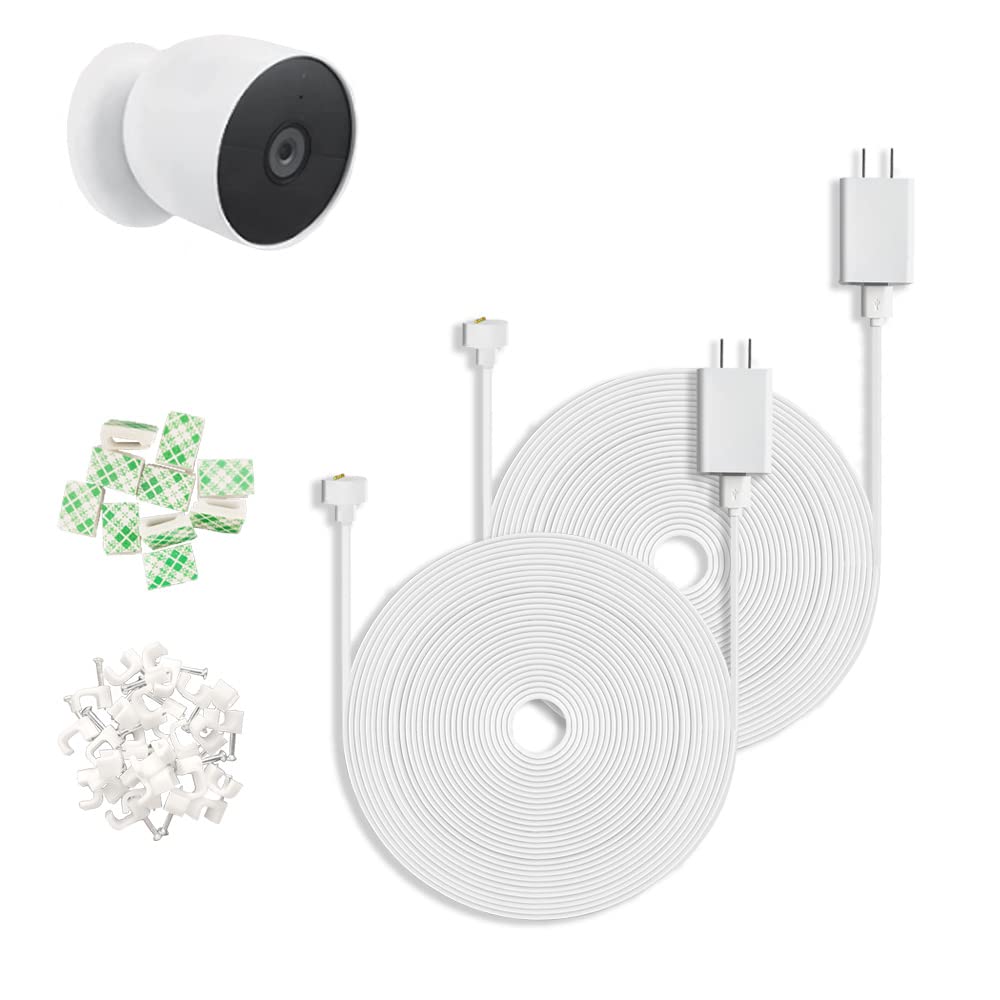 JJMASEE Paquete de 2 adaptadores de corriente y cable de 20 pies para Google Nest Cam (batería) para exteriores o interiores de 2ª