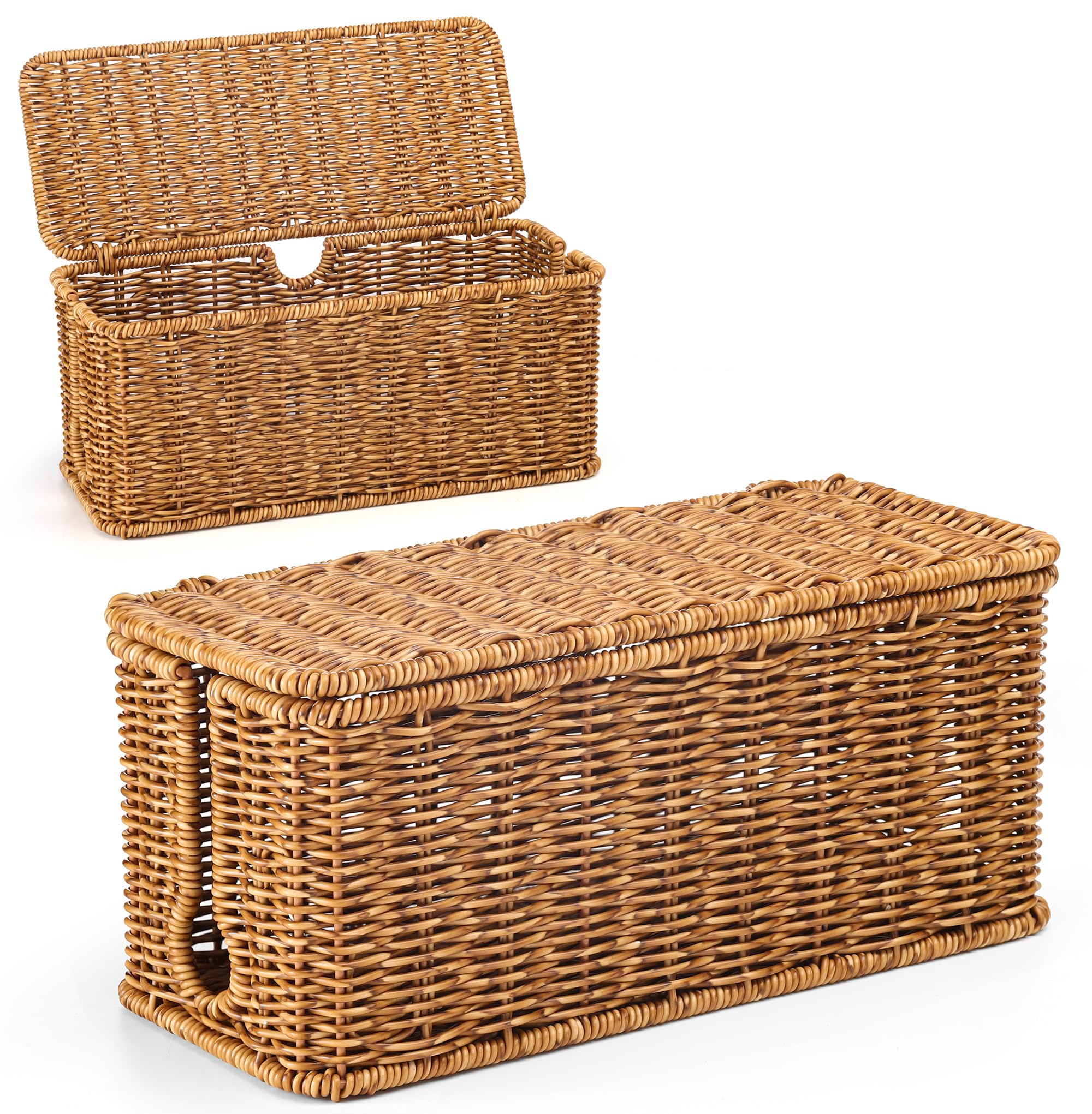 Caja de gestión de cables hecha a mano, organizador de cables de ratán de imitación, caja de gestión de cables de escritorio para