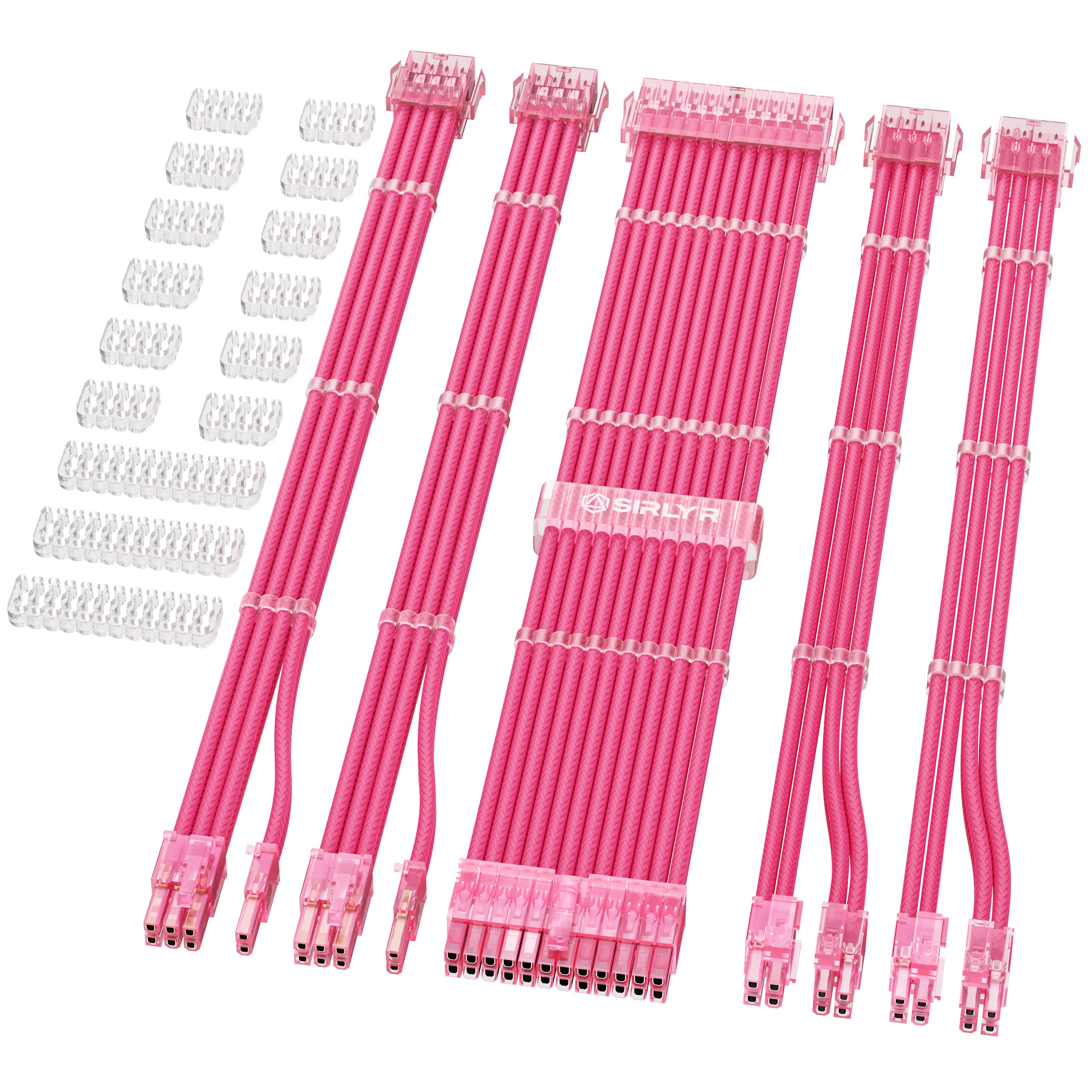 Sirlyr PSU Cable Extension Kit – 8Pin PCIE (34cm), 24Pin ATX & EPS (30cm), 16AWG Power Supply Cables with Combs, Soft Braided Slee