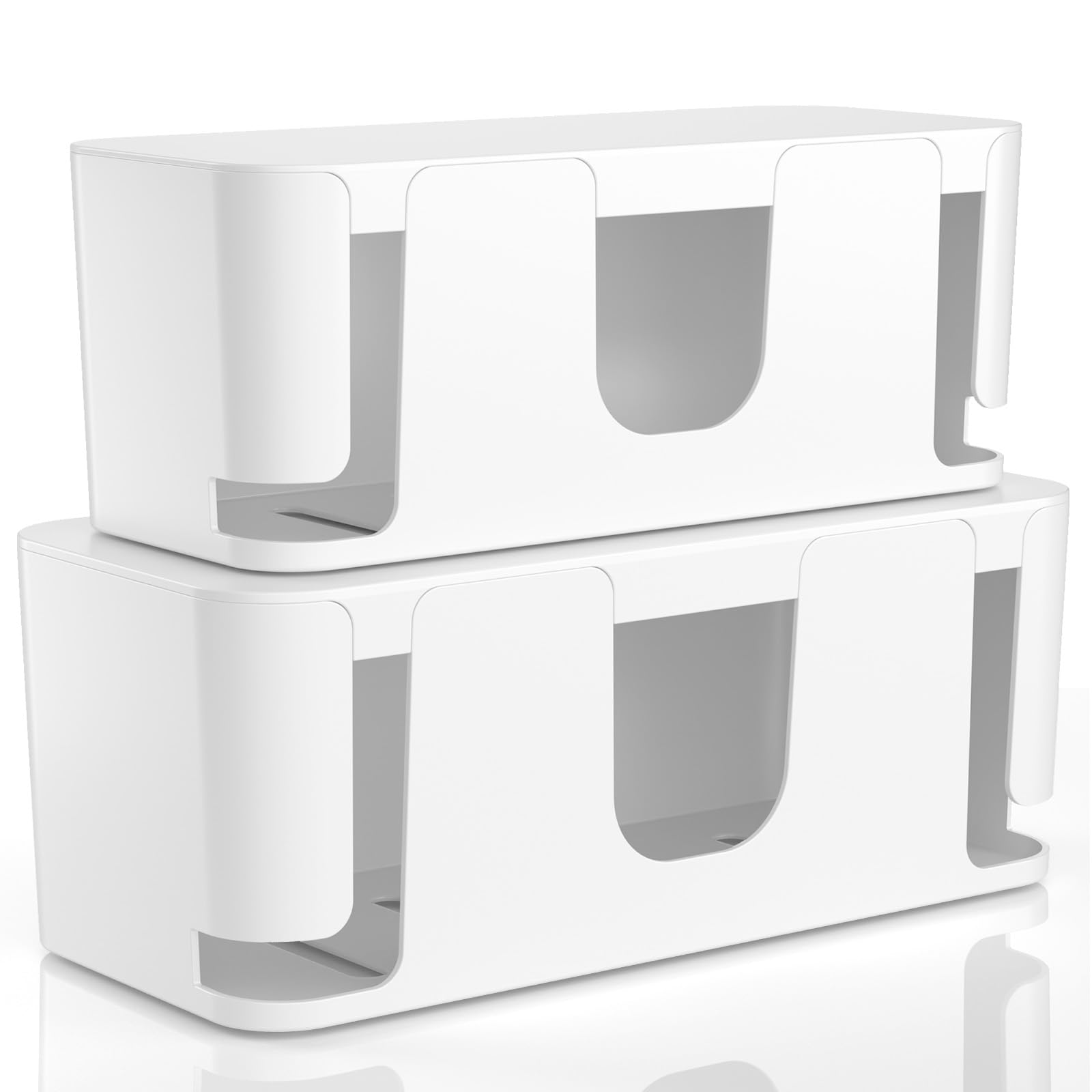 Delamu Paquete de 2 cajas de organización de cables, elegante organizador de cables para escritorio, cables ABS a prueba de mascot