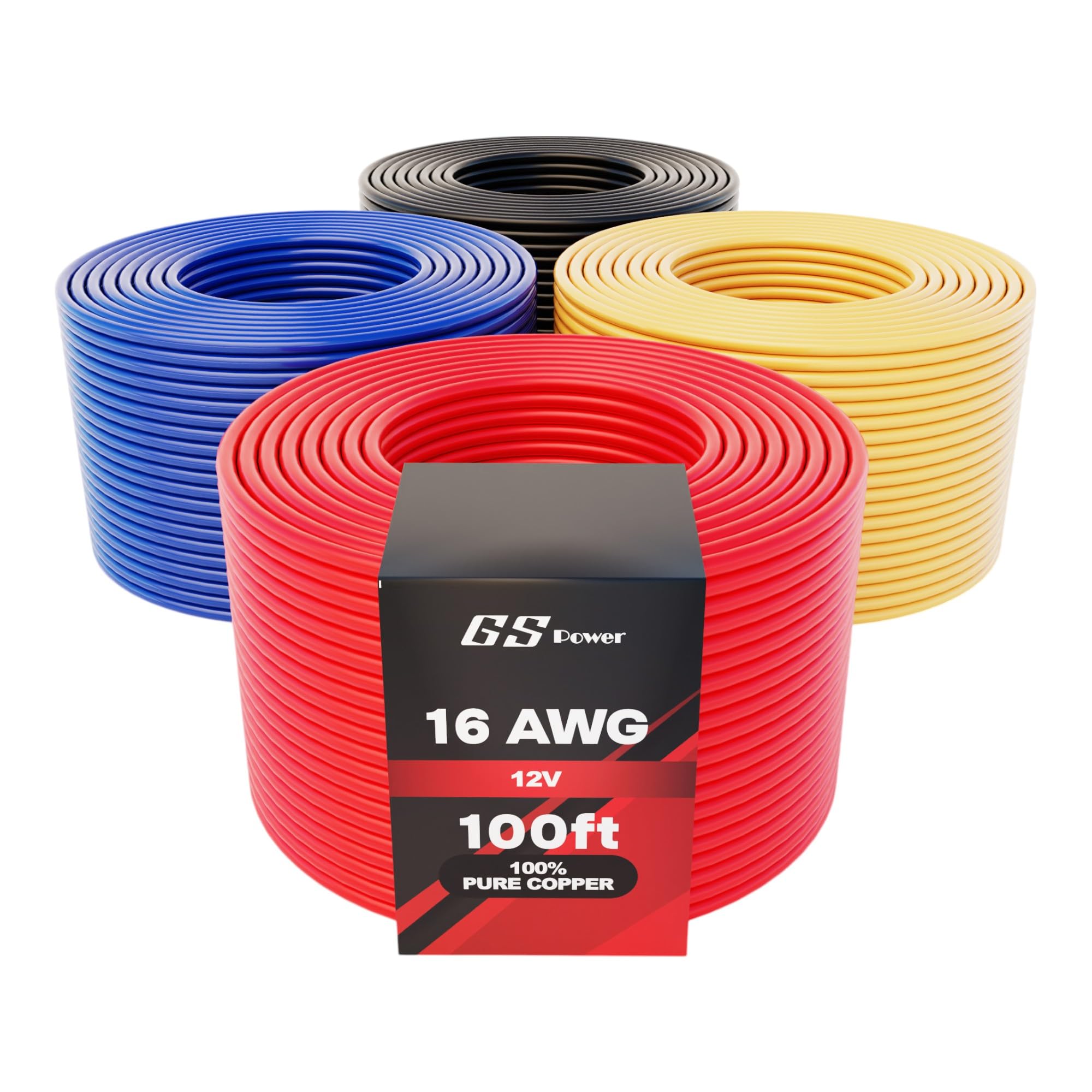 GS Power 100 % cobre 16 AWG (calibre de alambre americano) para automotriz, cable primario de 4 rollos de color (rollo de 100 pies