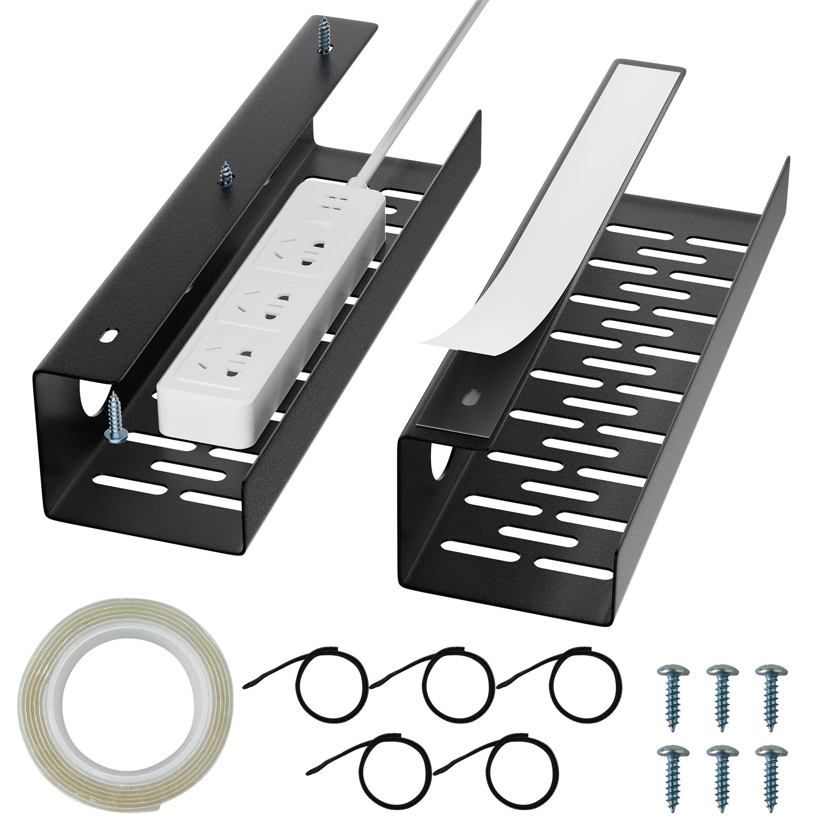 Bandeja autoadhesiva para organizar cables debajo del escritorio, 2 unidades, organizador de cables de acero para debajo del escri