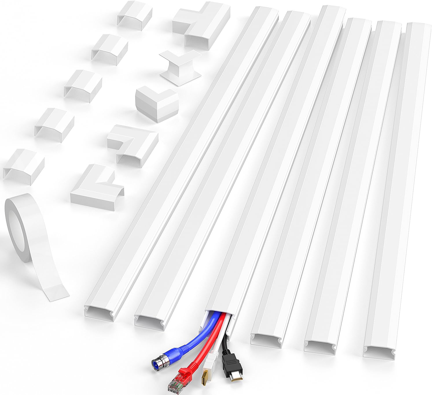 Delamu Pared oculta de cable de TV grande, cubiertas de cable de 94.5 pulgadas para 3-4 cables en la pared, fácil de instalar, org