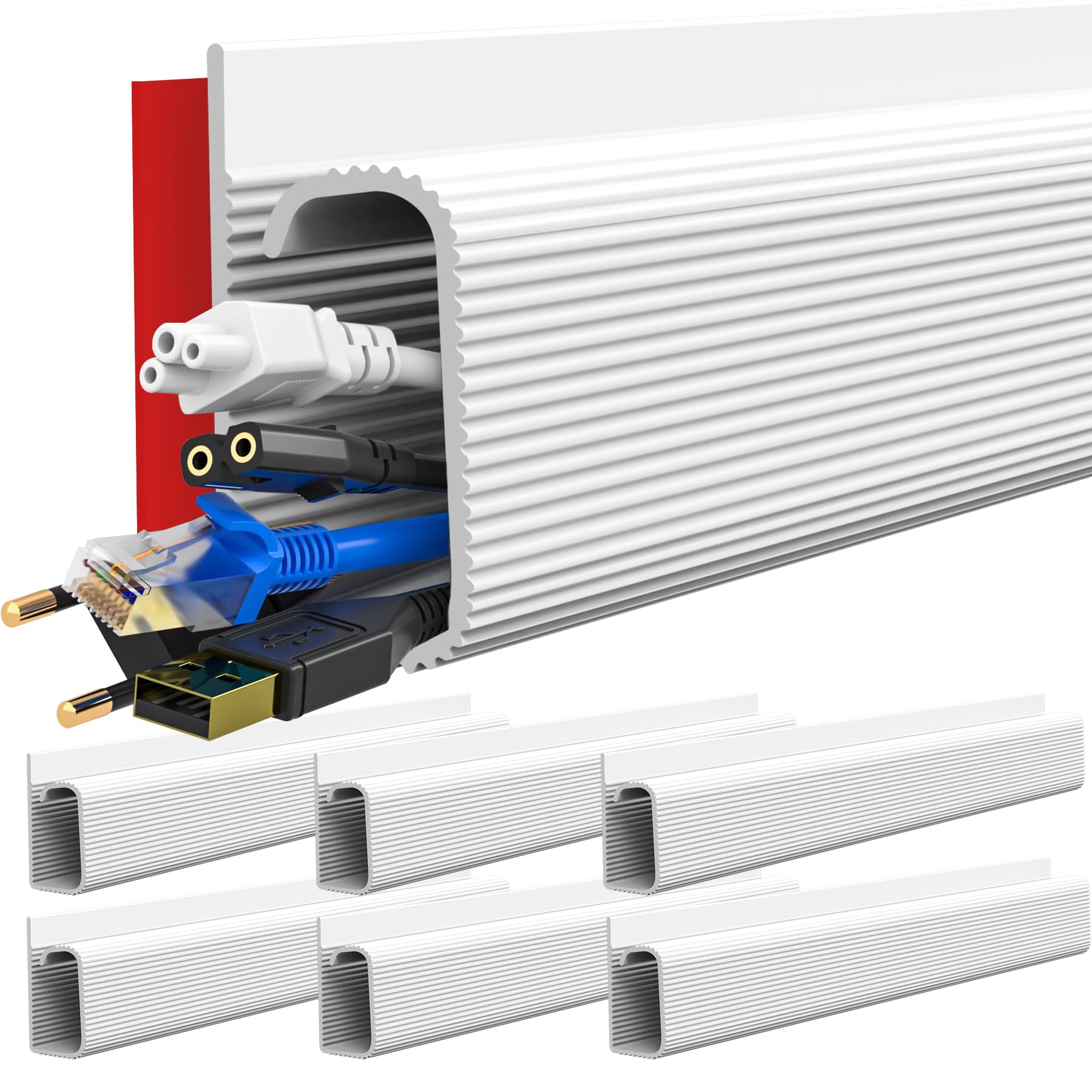 Organizador de cables para debajo del escritorio, 15.7 pulgadas, color blanco, 6 canaletas autoadhesivas con canal en J, ocultador