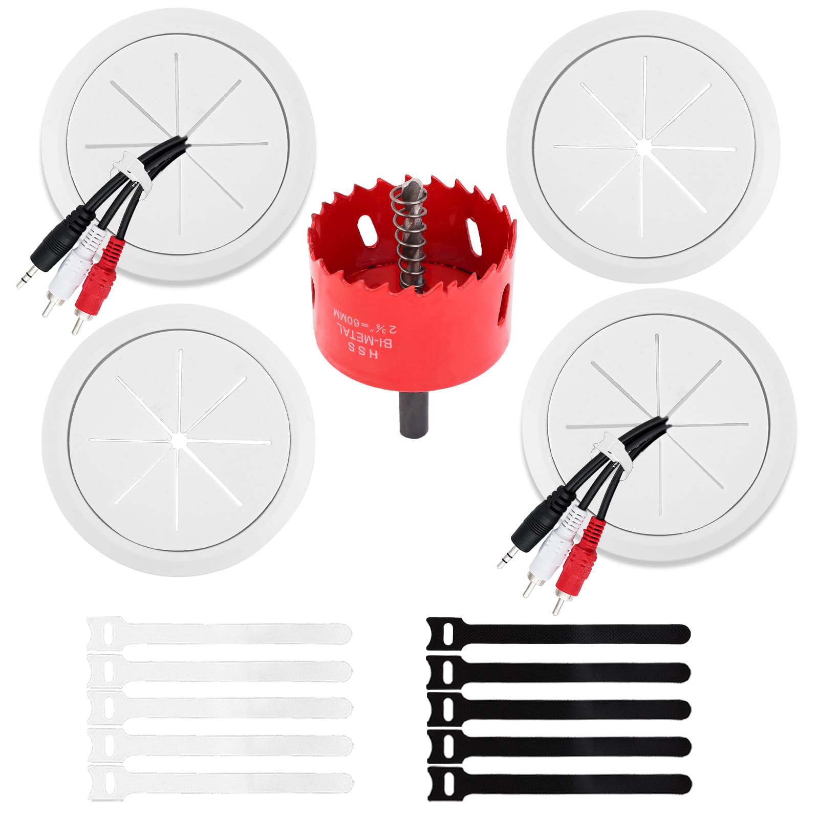 Paquete de 4 protectores de cables para TV montado en la pared, 2-3/8 pulgadas (agujero de 2.362 in) para pared de TV, kit de gest