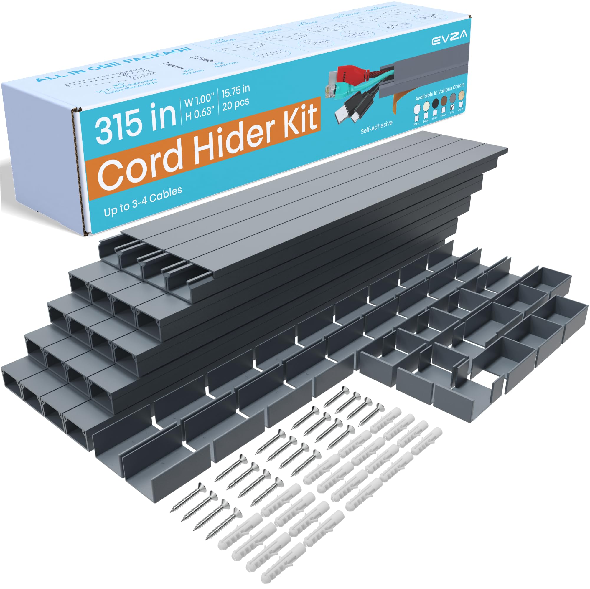 Kit de pared corrector de cable gris – Conducto de cable de 315 pulgadas para cable de extensión, kit de cubierta de cable para TV