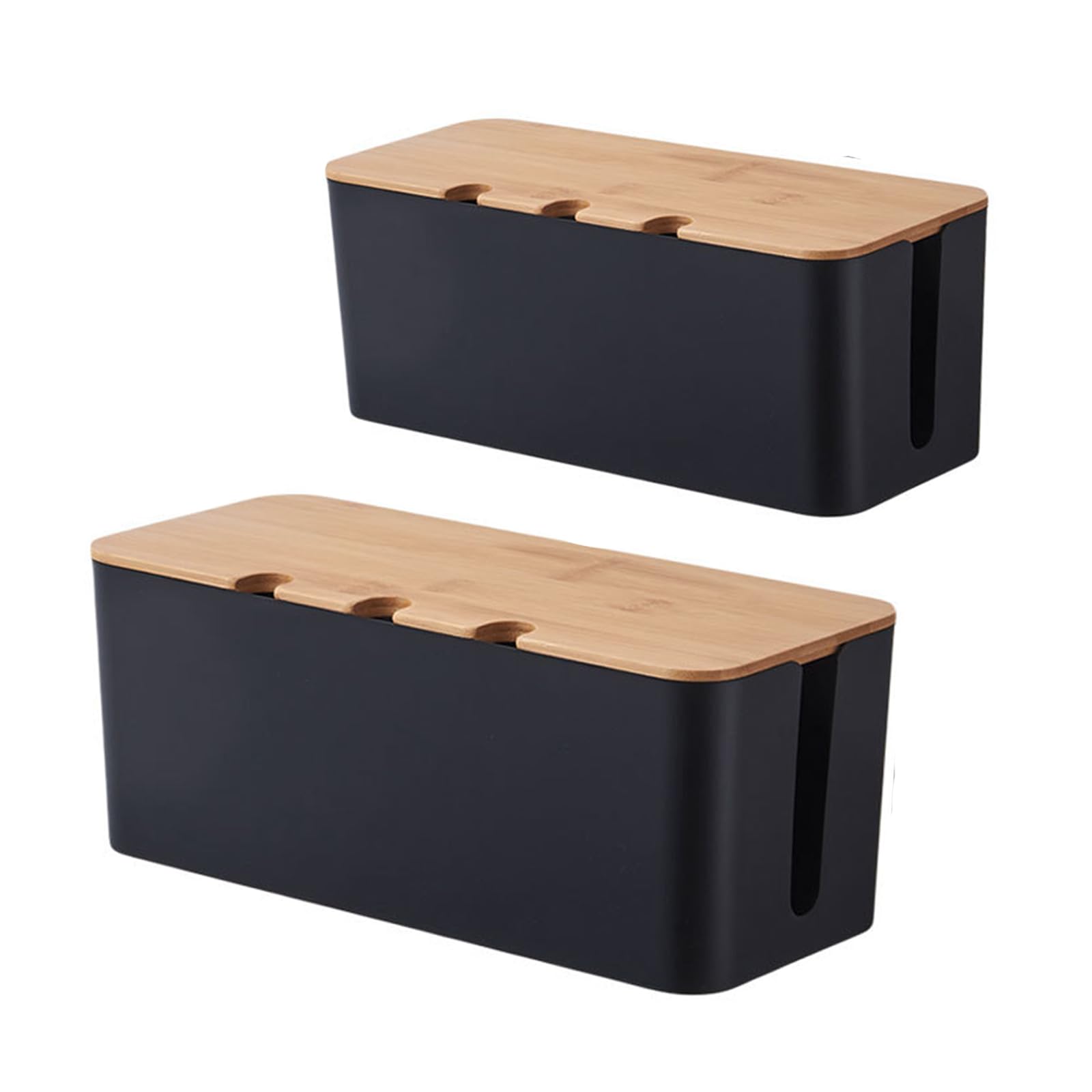 Caja de organización de cables con tapa de bambú, caja organizadora de cables para ocultar cables y regletas de alimentación, cabl
