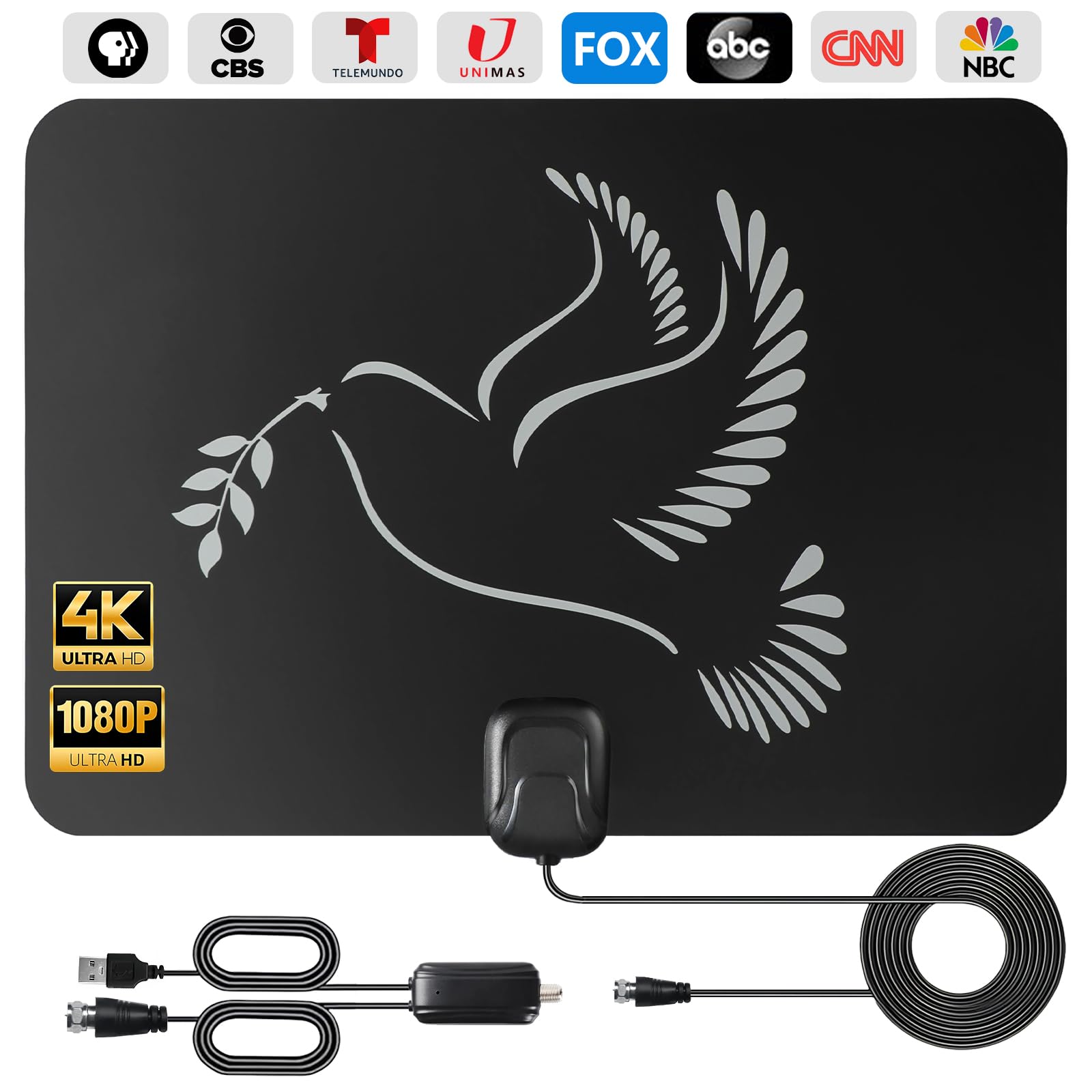 Antena HDTV digital amplificada de largo alcance para interiores con amplificador desmontable, soporte 4K 1080P Smart ATSC 3.0 TV