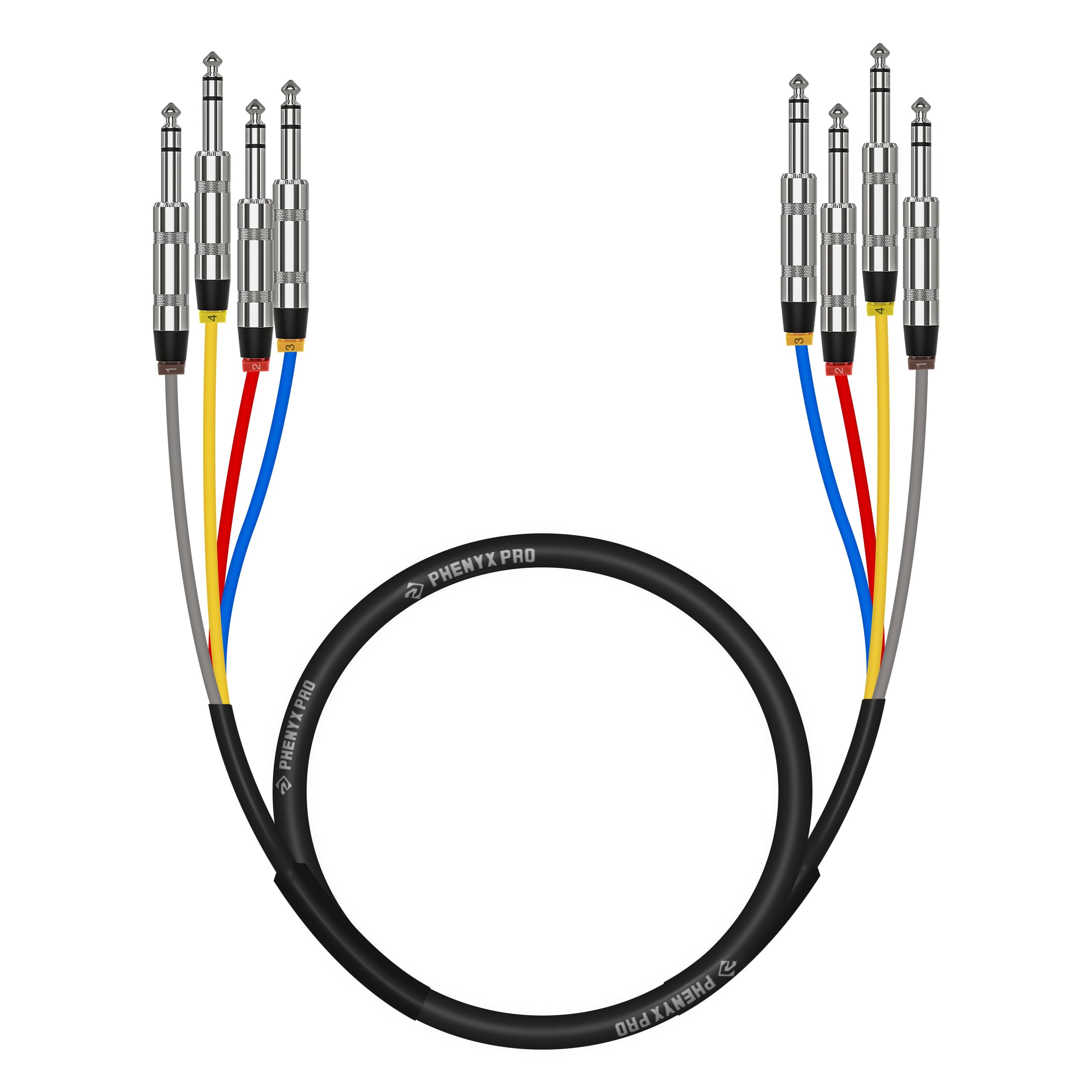 Phenyx Pro PCBL-QR4IN1-3 cable de serpiente TRS de 4 canales, parche codificado por colores con cobre OFC de 24 AWG, cable de 3 pi