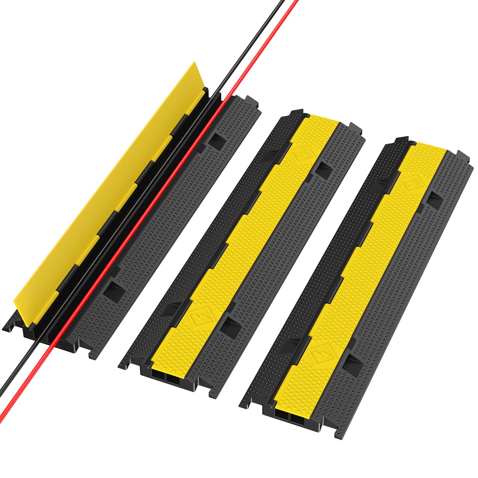 Rampa protectora de cables, paquete de 3 rampas modulares de 2 canales, capacidad de carga de 22000 libras, rampa de cable de goma