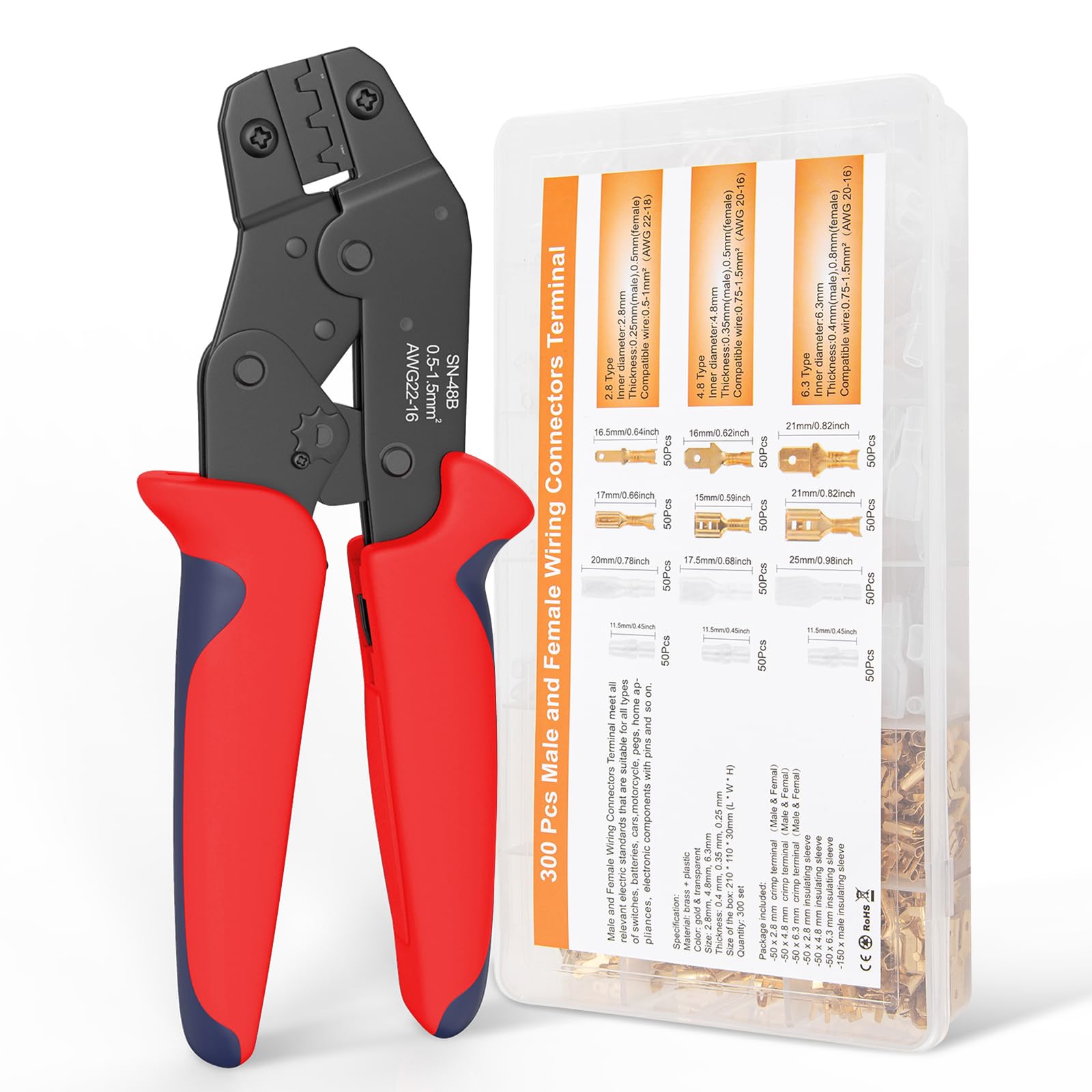 Kit de conectores de herramienta de prensado, herramienta de crimpado de alambre de trinquete para 300 piezas macho hembra con fun