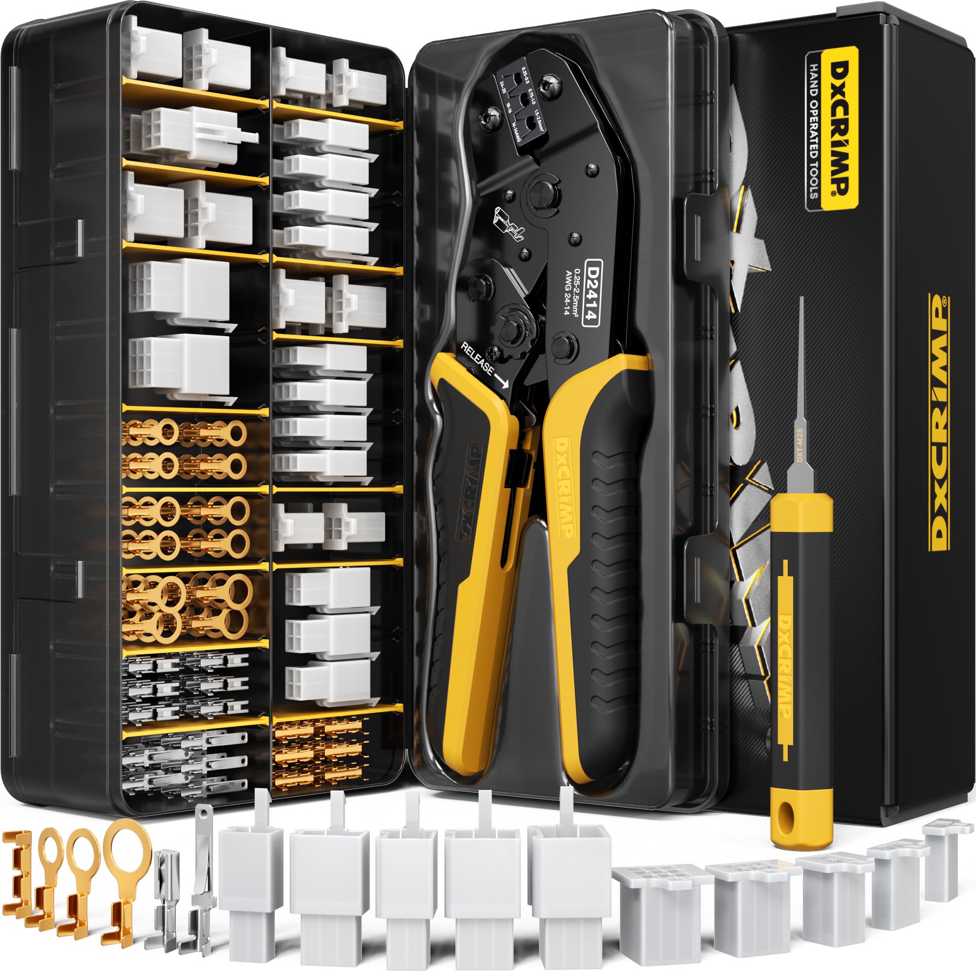 Kit de herramientas de prensado de conectores de cable eléctrico automotriz, conectores de 0.110 in 2 3 4 6 9 pines, AWG 24-14 cri
