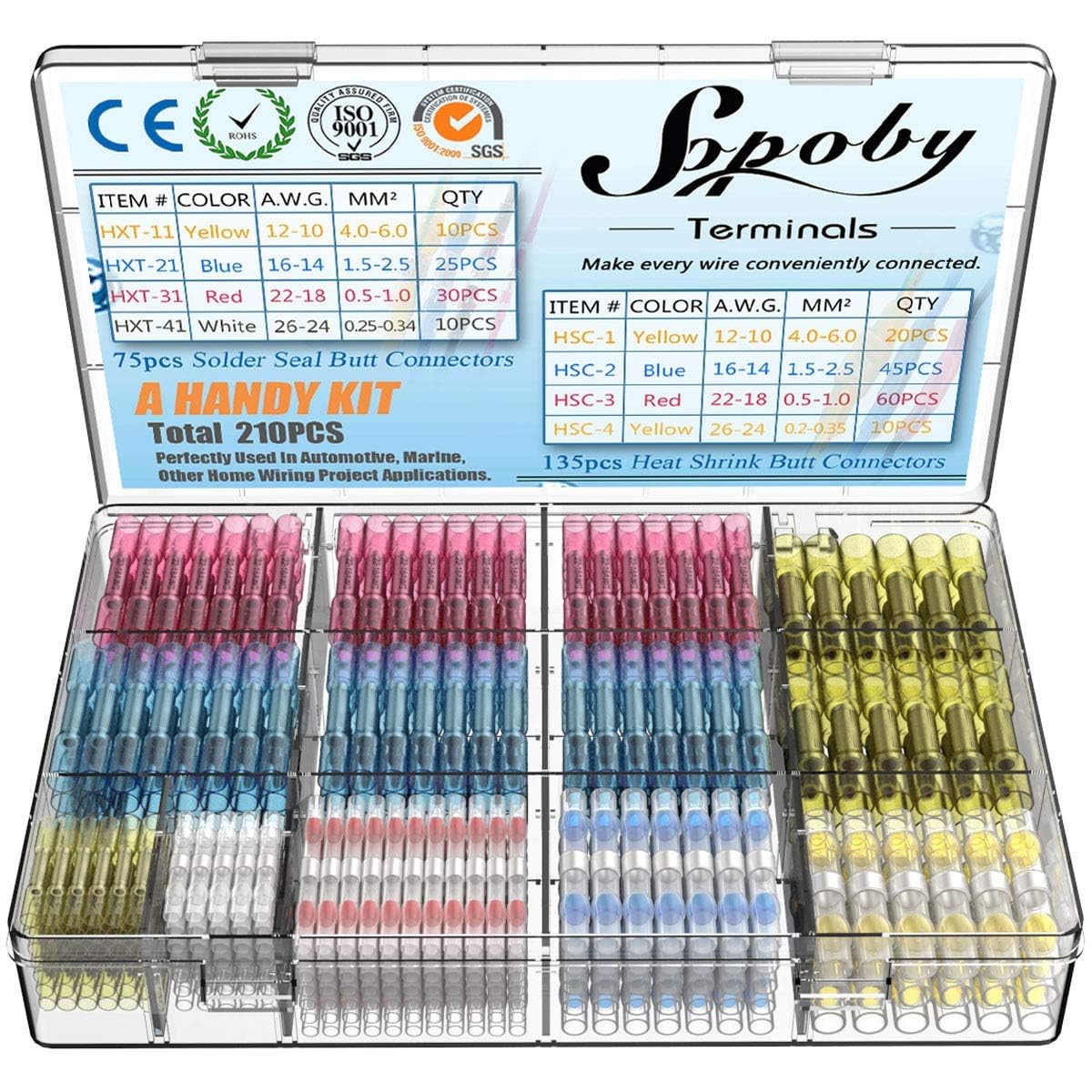 Sopoby – Juego de conectores termorretráctiles para cable, sellado de soldadura y conectores eléctricos, terminales de cable, surt