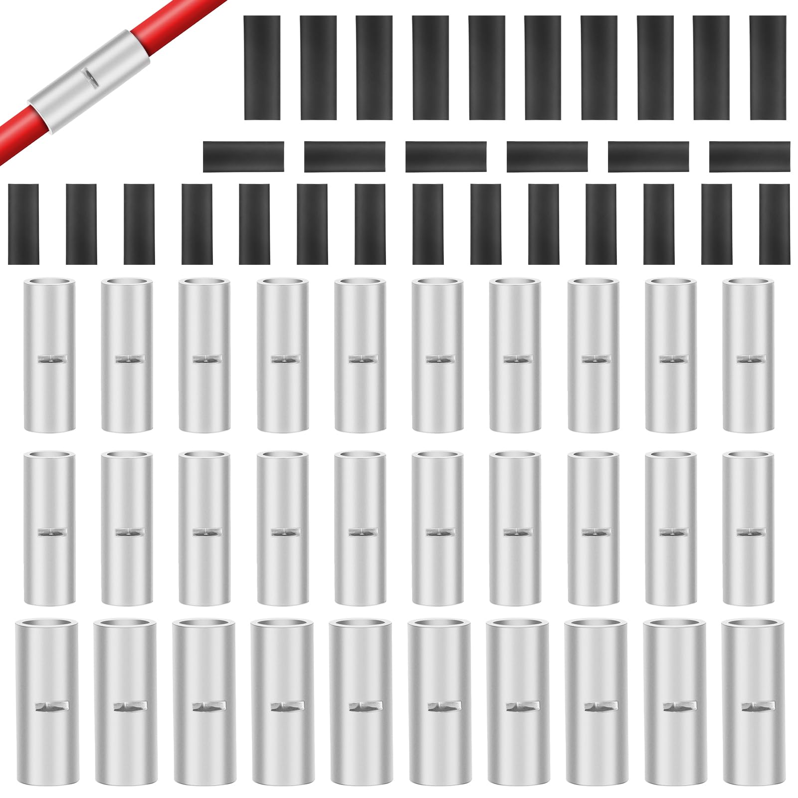 haisstronica Kit de conectores a tope no aislados, 50 conectores de alambre de cobre estañado sin aislamiento para automotrices ma