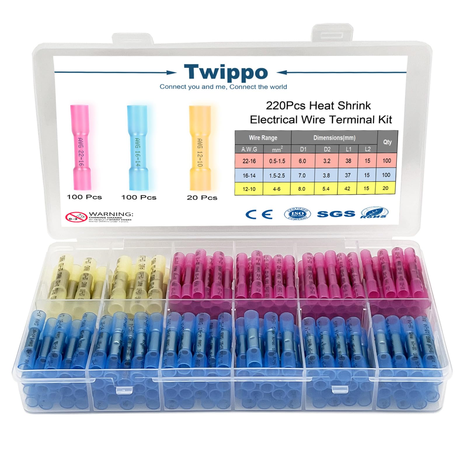 Kit de conectores de alambre de sellado de soldadura de 200 piezas, conectores a tope de alambre termorretráctil, conectores de al