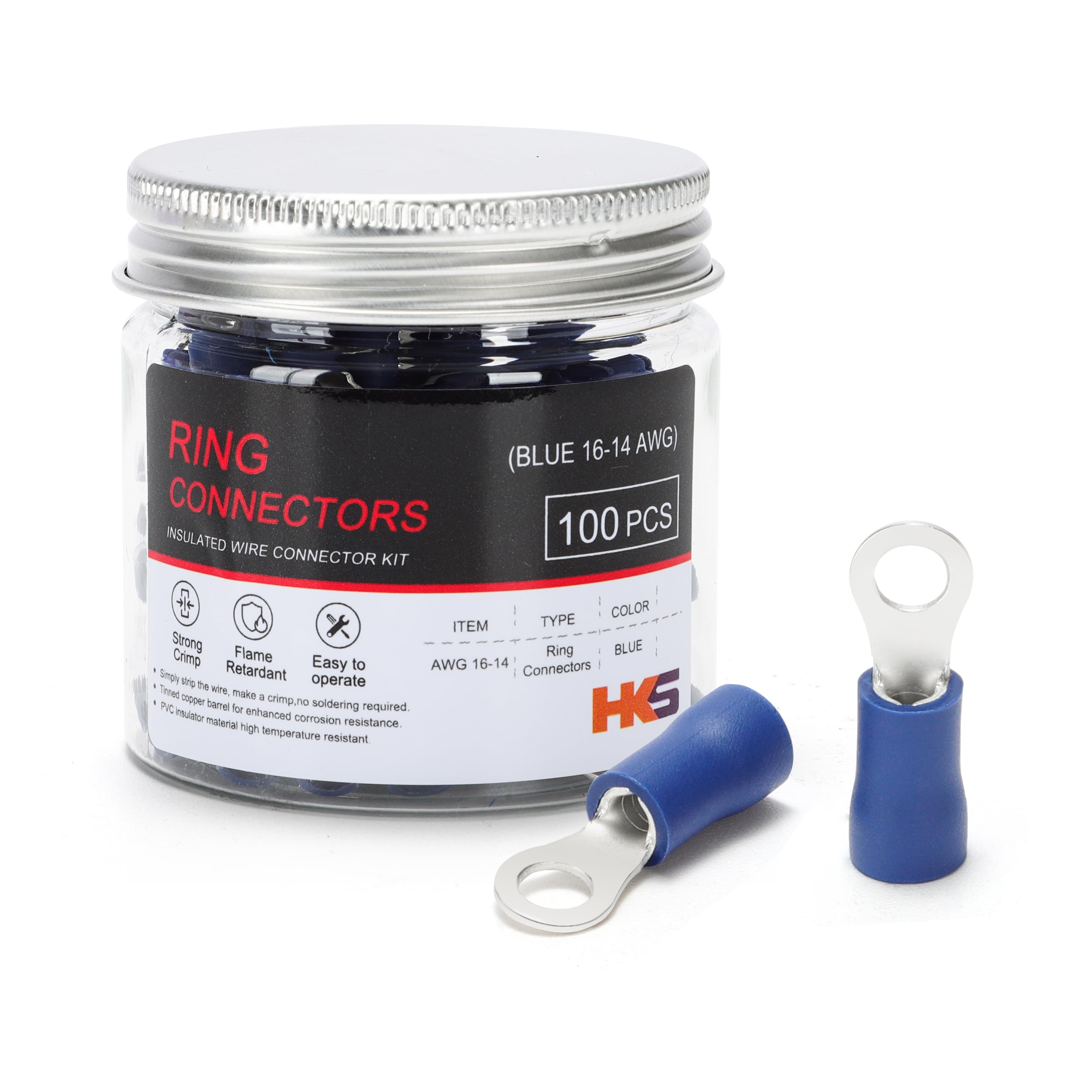 HKS 100 terminales de anillo aislado #8 azul 16-14 AWG – M4 – cobre rojo estañado – Kit de conector de cable eléctrico PVC crimpad